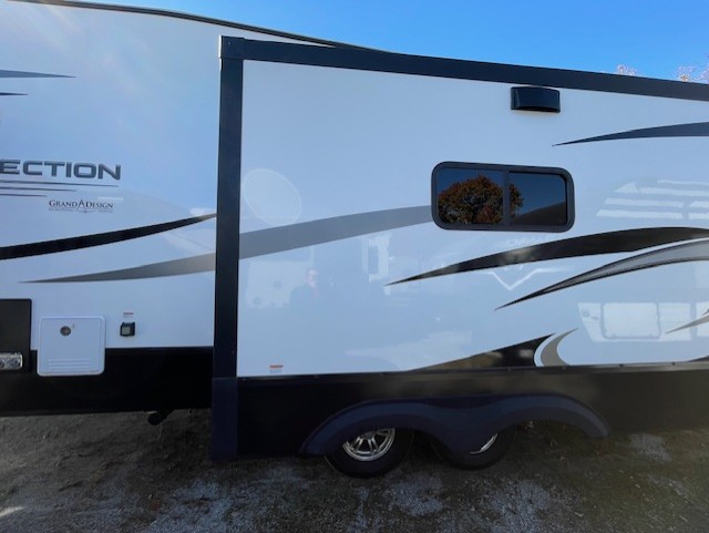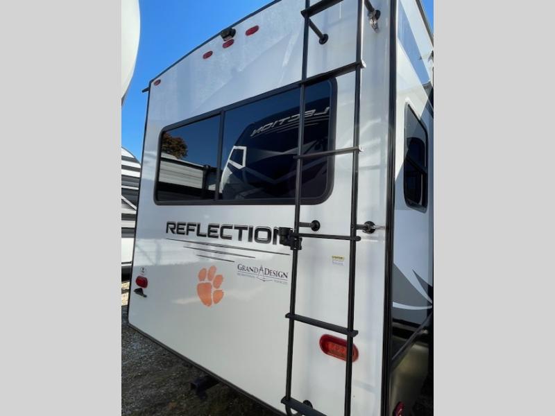 With any Reflection fifth wheels by Grand Design, you will have a 165W solar panel for off-grid camping and a 50 Amp charge controller and inverter prep, a Max Turn radius front cap for easy towing around town and into your campsite, a Universal All-In-One Docking Station, unobstructed pass-through storage, and Goodyear E-rated tires. Some other top features include a chef's kitchen with a 30" stainless steel microwave and residential cooktop, a USB charging station, and the ductless "Evenflow" heating system with no vents in the floor to collect debris. Each is constructed of high gloss gel coat exterior sidewalls, residential 5" truss rafters, walk-on roof decking, a fiberglass and radiant foil roof and front cap insulation plus laminated aluminum framed side walls, rear wall, roof and end walls in slide rooms. Choose luxury, value and towability over all the others, take home a Reflection of your good taste!