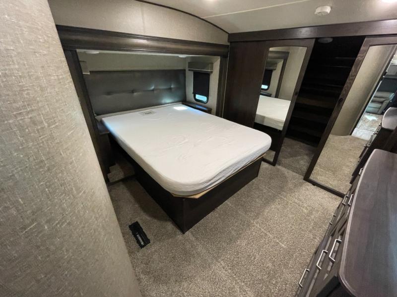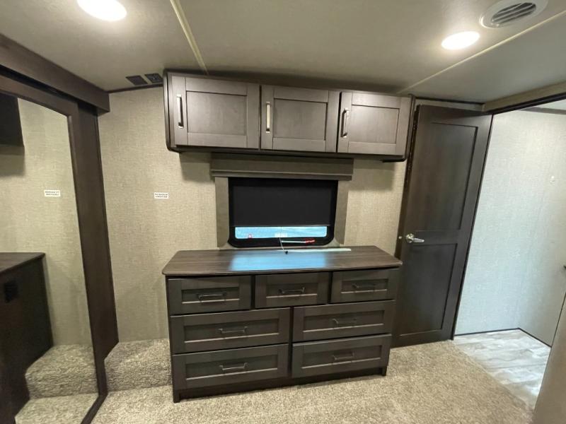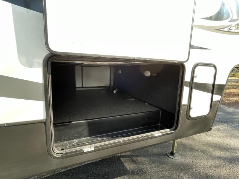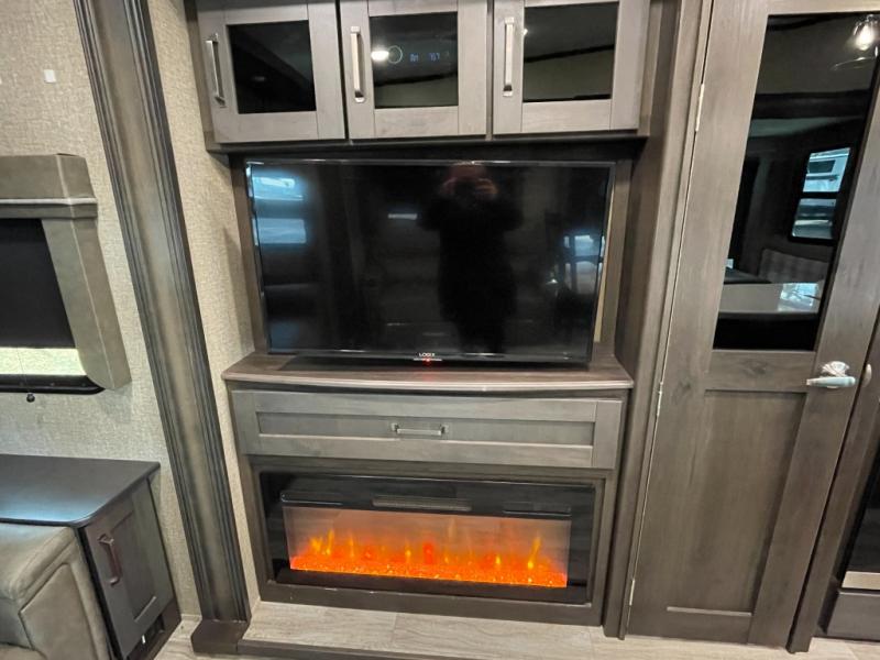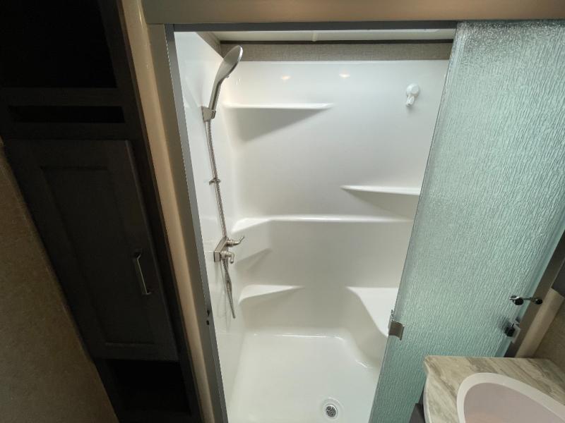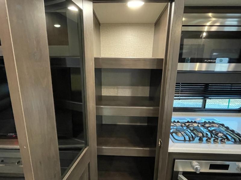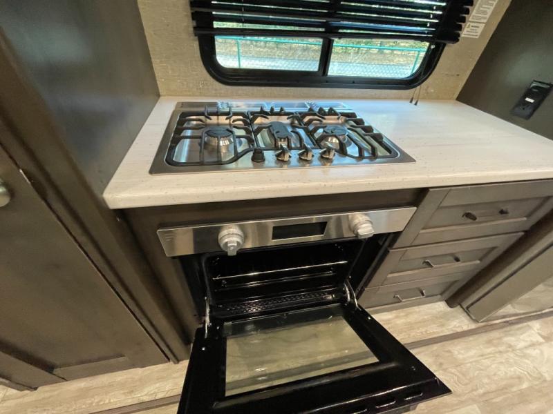 The kitchen is equally impressive, featuring generous counter space, ample cabinetry, and a well-designed layout that allows for easy meal prep and storage. Whether you’re cooking a quick breakfast or hosting dinner on the road, the Reflection 337RLS provides the space and convenience you need.