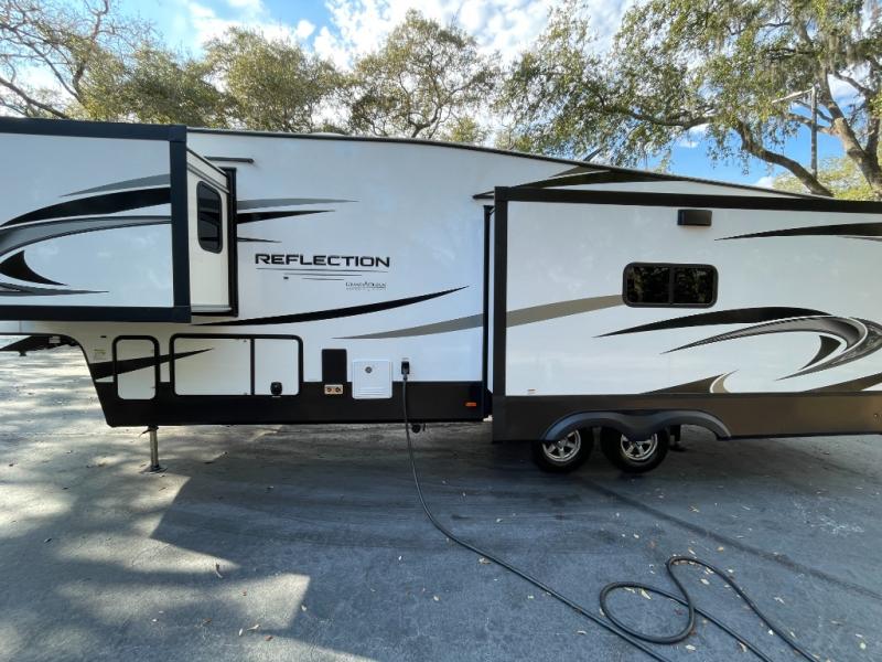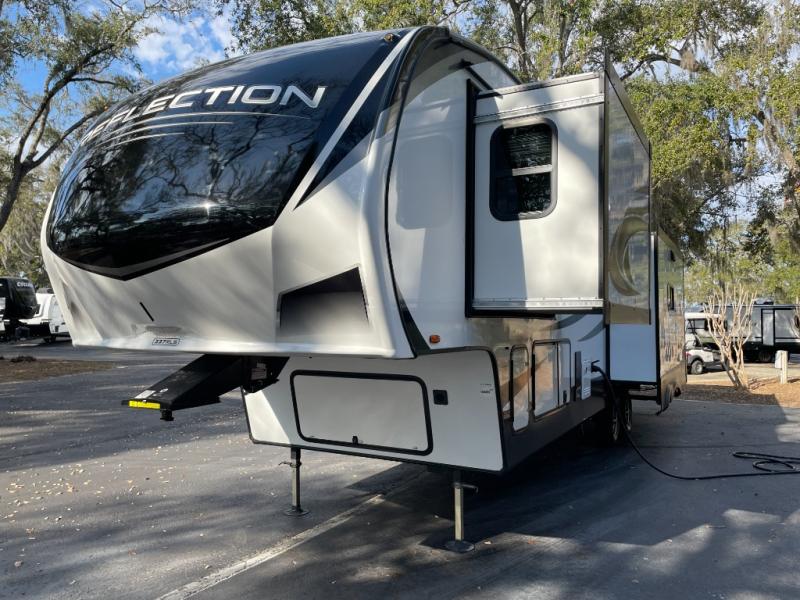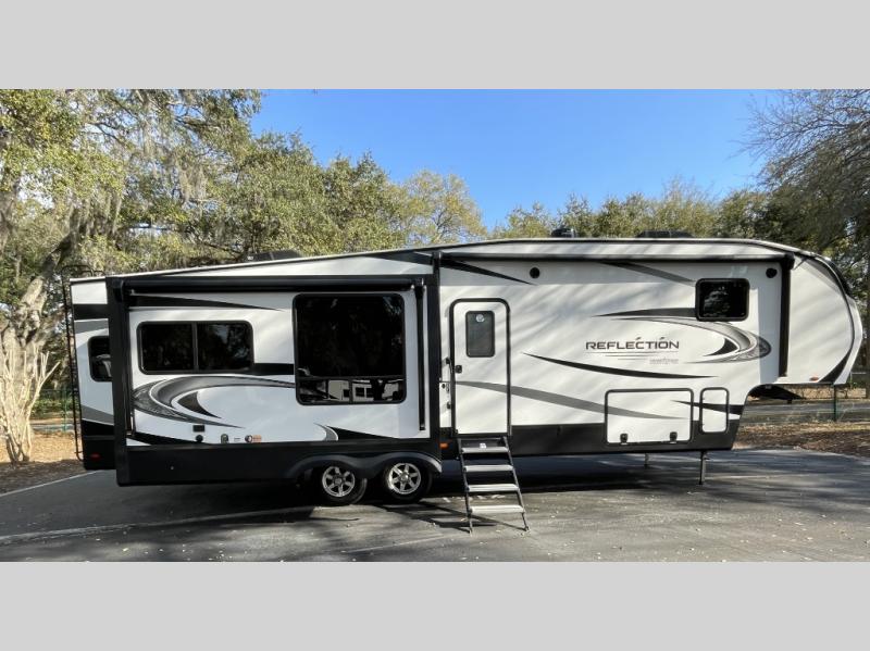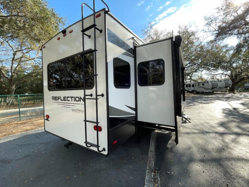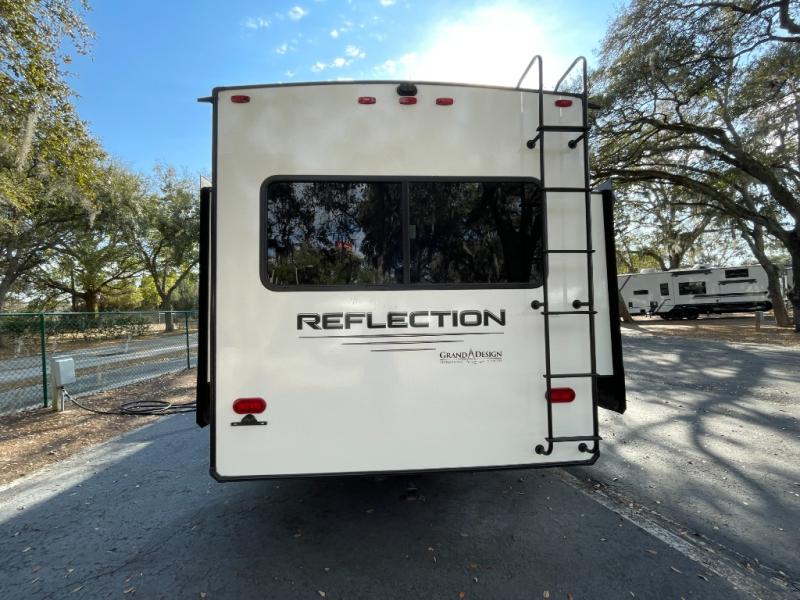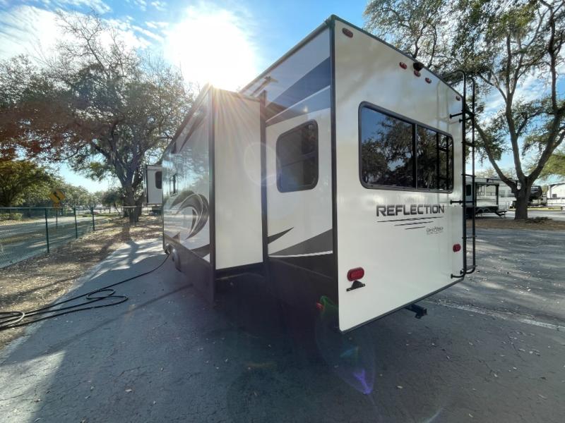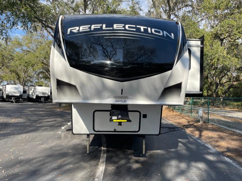 The Reflection 337RLS is renowned for its exceptionally spacious rear living floorplan. Expansive opposing slide-outs create a wide-open living area perfect for relaxing, entertaining, or extended stays. Large panoramic windows fill the interior with natural light, enhancing the sense of openness while offering beautiful outdoor views.