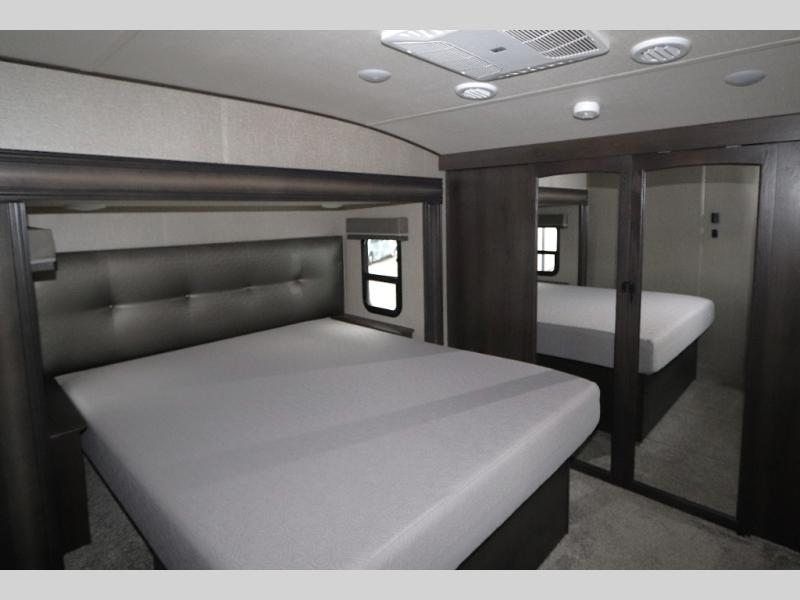 Luxury, value, and towability is what you will find in every one of these Reflection fifth wheels and travel trailers by Grand Design! The mandatory Arctic 4-Seasons Protection package allows you to camp all year round with the 35k BTU high capacity furnace, the Thermofoil insulation, and the heated and enclosed underbelly with circulating heat. Their gourmet kitchens have everything you will need to create home cooked meals including a deep, seated stainless steel sink with a high rise faucet with a pull down sprayer to make clean up easier too. The ductless flooring means there are no floor vent covers to collect dirt or debris, and the universal docking station is an all in one heated location with an EZ winterization system. Easily open the pivoting AXISTEP which will help eliminate debris and moisture from falling inside the unit and also goes all the way down to the ground to make it more stable when entering. Start your next camping trip in true luxury!