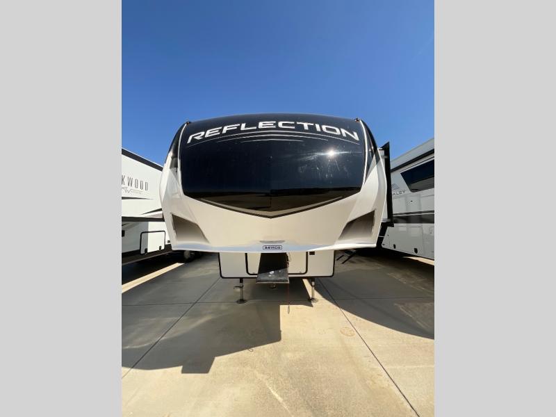 With any Reflection fifth wheels by Grand Design, you will have a 165W solar panel for off-grid camping and a 50 Amp charge controller and inverter prep, a Max Turn radius front cap for easy towing around town and into your campsite, a Universal All-In-One Docking Station, unobstructed pass-through storage, and Goodyear E-rated tires. Some other top features include a chef's kitchen with a 30" stainless steel microwave and residential cooktop, a USB charging station, and the ductless "Evenflow" heating system with no vents in the floor to collect debris. Each is constructed of high gloss gel coat exterior sidewalls, residential 5" truss rafters, walk-on roof decking, a fiberglass and radiant foil roof and front cap insulation plus laminated aluminum framed side walls, rear wall, roof and end walls in slide rooms. Choose luxury, value and towability over all the others, take home a Reflection of your good taste!