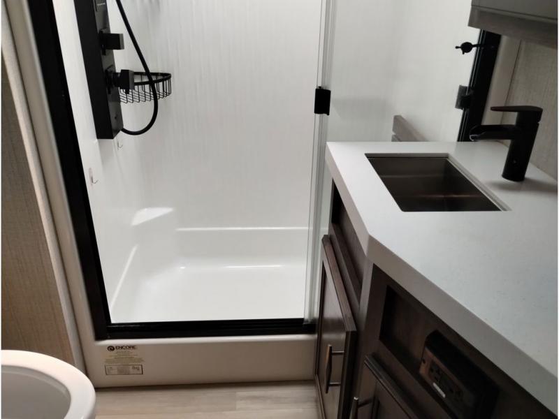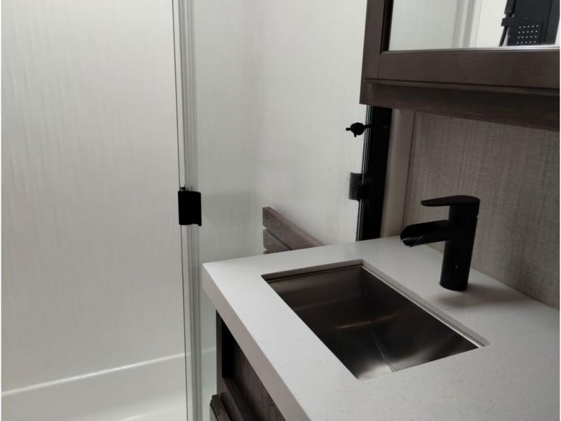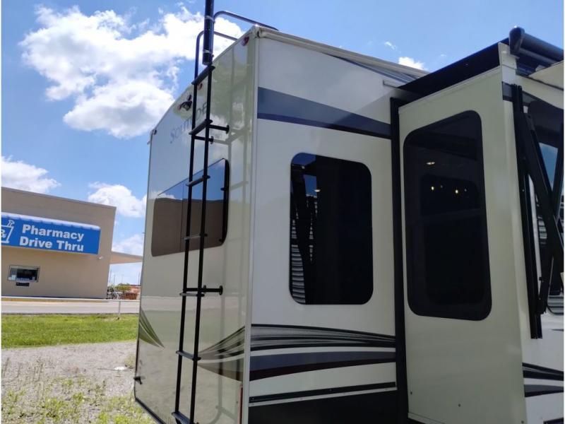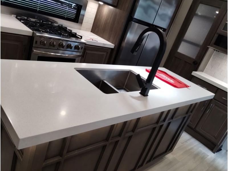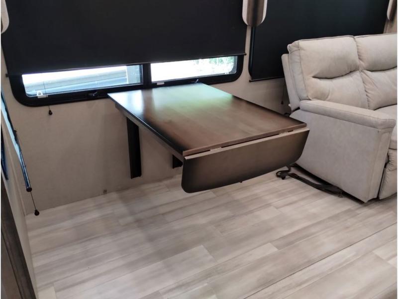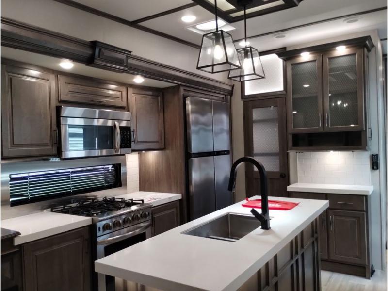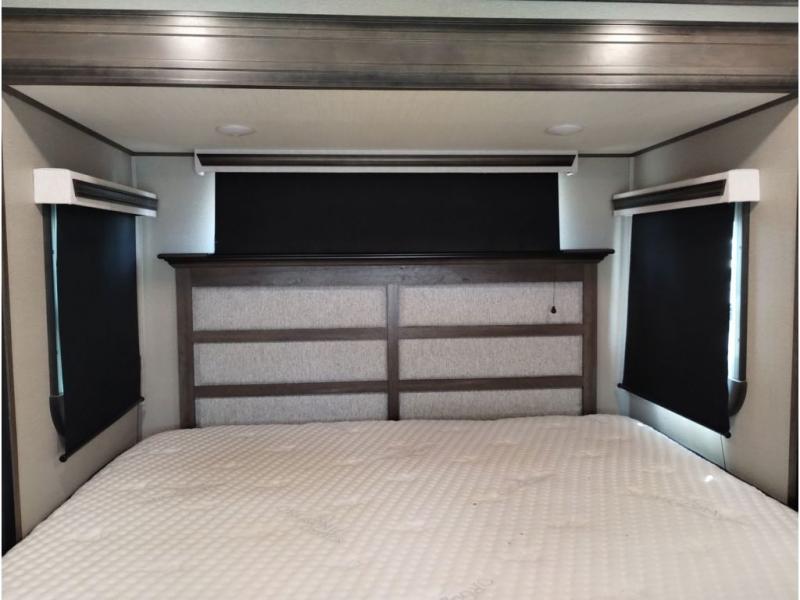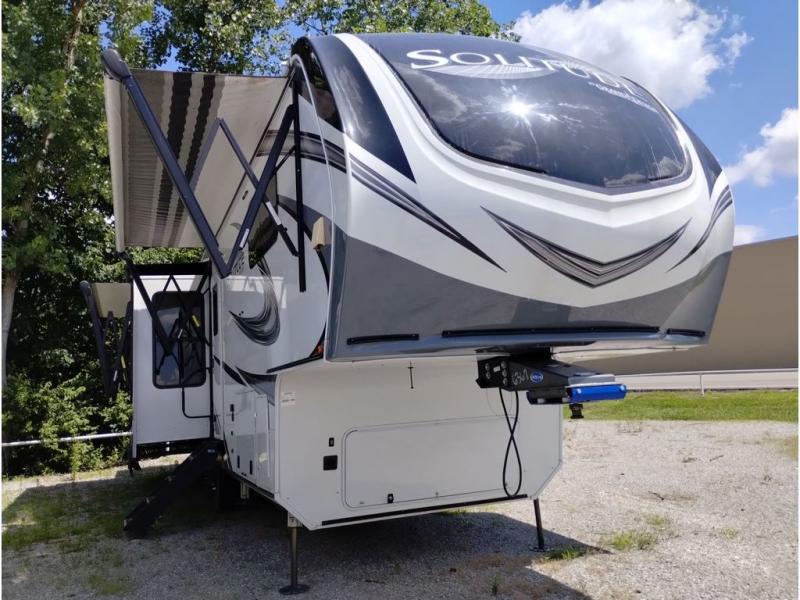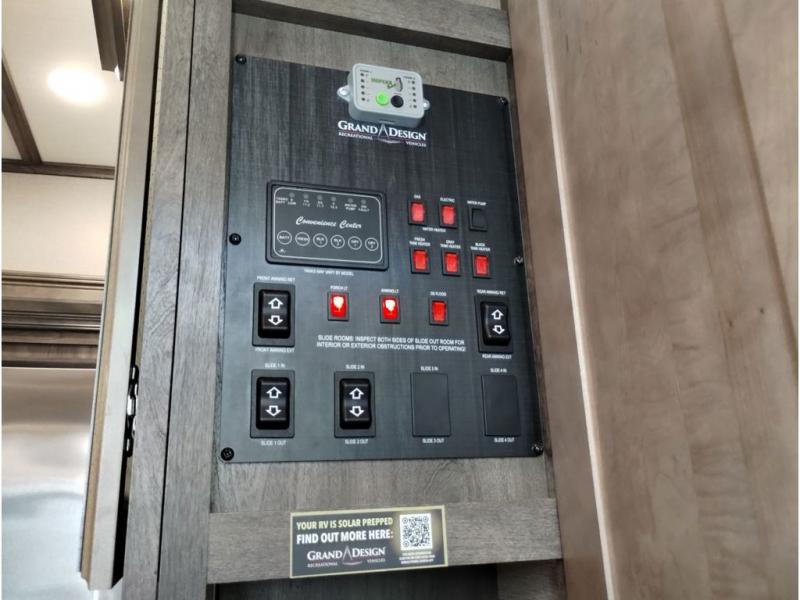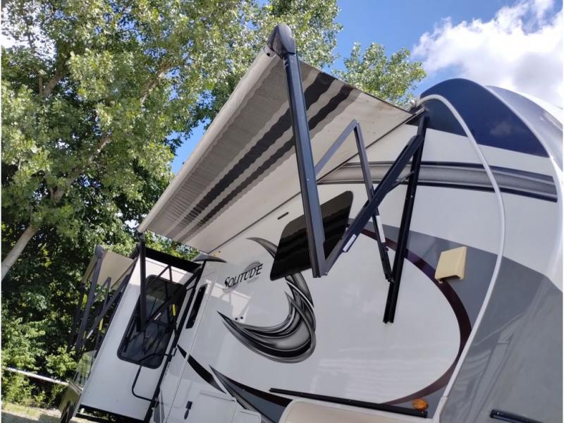 With any Solitude fifth wheel by Grand Design, you will get maximum insulation from the thermal roof design, the exclusive fully laminated walls, the triple insulated main floor, the Rail-Tite underbelly seal, the insulated gooseneck and the insulated baggage doors. The MORryde rubber pin box system utilizes a unique rubber shear spring to positively deal with rough towing and road shock, the Tire Linc TPMS system monitors pressure and temperature, and the 6-point hydraulic system allows you to setup easily. And the upgraded shower system, the hardwood window valances, the oversized kitchen pantry, the window above the master bed headboard, and the Rockford Fosgate stereo entertainment system with HDMI and App controls are a few more reasons you will love these extended-stay fifth wheels!