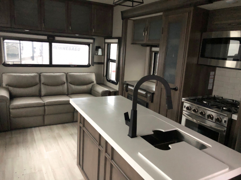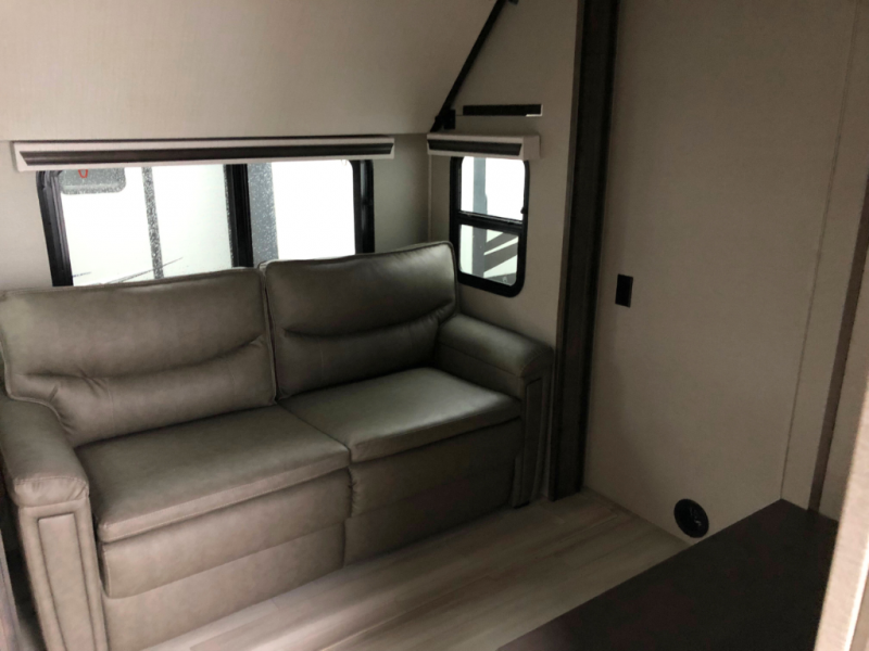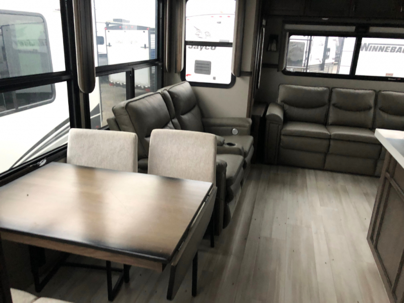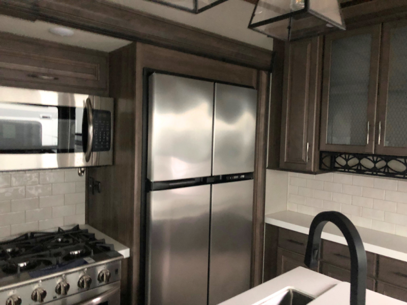 With any Solitude fifth wheel by Grand Design, you will get maximum insulation from the thermal roof design, the exclusive fully laminated walls, the triple insulated main floor, the Rail-Tite underbelly seal, the insulated gooseneck and the insulated baggage doors. The MORryde rubber pin box system utilizes a unique rubber shear spring to positively deal with rough towing and road shock, the Tire Linc TPMS system monitors pressure and temperature, and the 6-point hydraulic system allows you to setup easily. And the upgraded shower system, the hardwood window valances, the oversized kitchen pantry, the window above the master bed headboard, and the Rockford Fosgate stereo entertainment system with HDMI and App controls are a few more reasons you will love these extended-stay fifth wheels!