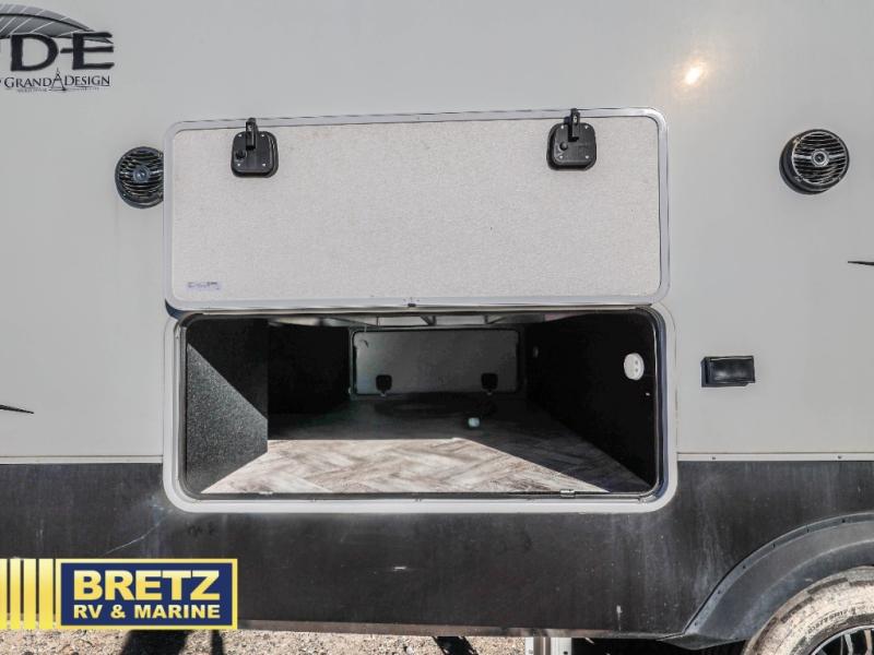 With any Solitude fifth wheel by Grand Design, you will get maximum insulation from the thermal roof design, the exclusive fully laminated walls, the triple insulated main floor, the Rail-Tite underbelly seal, the insulated gooseneck and the insulated baggage doors. The MORryde rubber pin box system utilizes a unique rubber shear spring to positively deal with rough towing and road shock, the Tire Linc TPMS system monitors pressure and temperature, and the 6-point hydraulic system allows you to setup easily. And the upgraded shower system, the hardwood window valances, the oversized kitchen pantry, the window above the master bed headboard, and the Rockford Fosgate stereo entertainment system with HDMI and App controls are a few more reasons you will love these extended-stay fifth wheels!