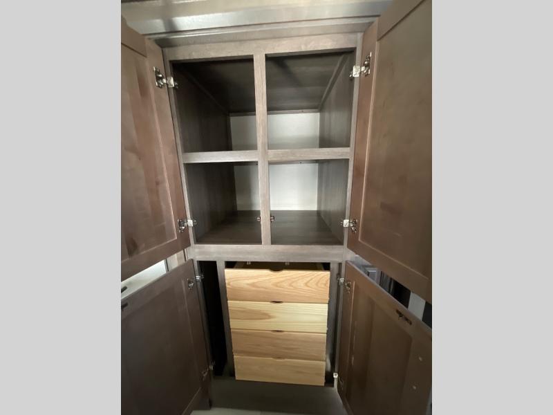 With any Solitude fifth wheel by Grand Design, you will get maximum insulation from the thermal roof design, the exclusive fully laminated walls, the triple insulated main floor, the Rail-Tite underbelly seal, the insulated gooseneck and the insulated baggage doors. The MORryde rubber pin box system utilizes a unique rubber shear spring to positively deal with rough towing and road shock, the Tire Linc TPMS system monitors pressure and temperature, and the 6-point hydraulic system allows you to setup easily. And the upgraded shower system, the hardwood window valances, the oversized kitchen pantry, the window above the master bed headboard, and the Rockford Fosgate stereo entertainment system with HDMI and App controls are a few more reasons you will love these extended-stay fifth wheels!