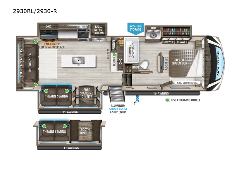 | Awning Info | 11' and 16' Power w/Integrated LED Lighting |