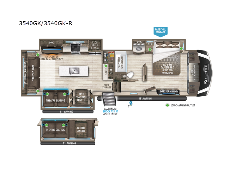 | Awning Info | 11' and 18' Power w/Integrated LED Lighting |