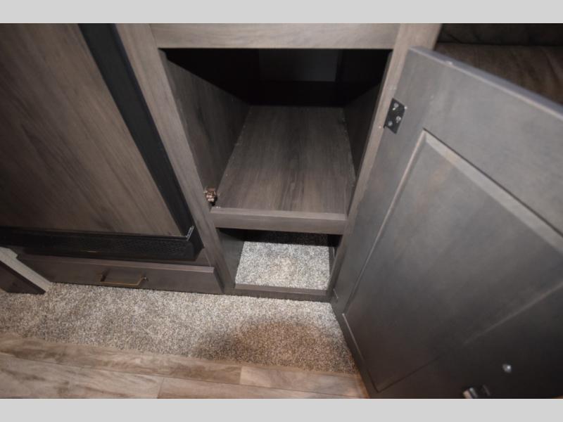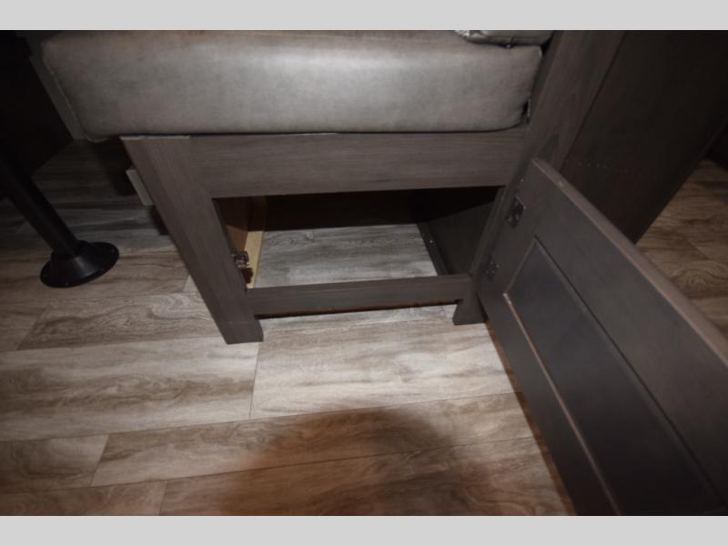 Step inside and discover the inviting rear kitchen, designed for easy meal prep with plenty of counter space and storage for all your essentials. After a day of outdoor fun, unwind in the cozy 62" theater seating or gather around the booth dinette, which doubles as an extra sleeping area for guests or little ones.