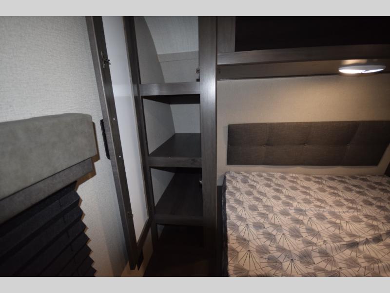 The walk-through bathroom makes access convenient from both the living area and master bedroom, and when it’s time to rest, the queen bed in the private front bedroom ensures a peaceful night’s sleep. Want to head out early for a sunrise hike or fishing trip? The second entry door lets you slip out quietly without disturbing anyone.