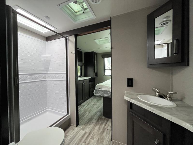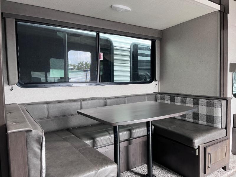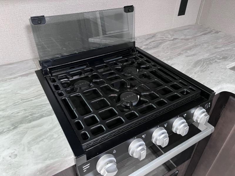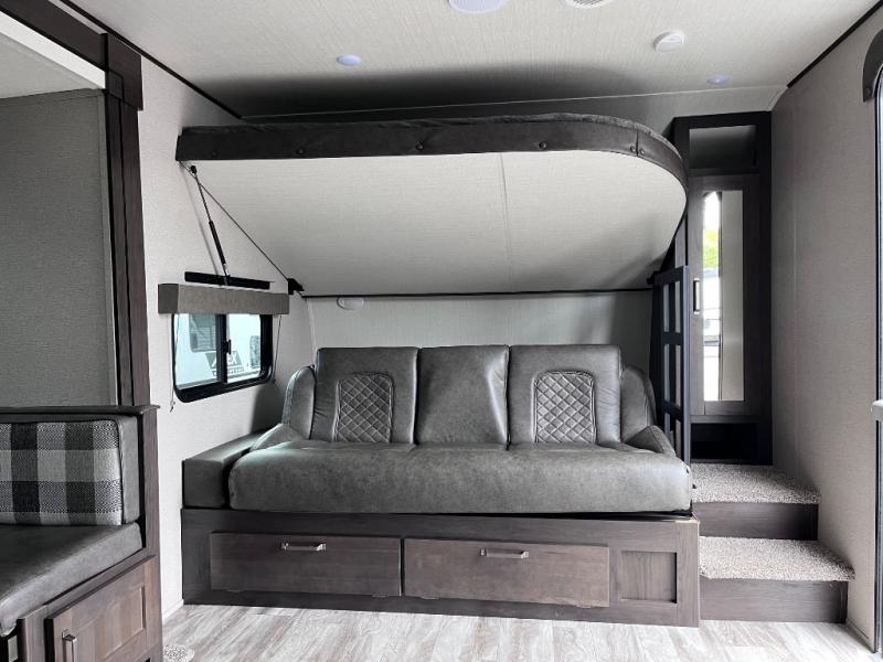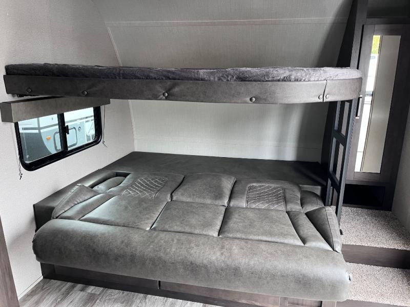 Get ready to Xplor the great outdoors in this cozy travel trailer! Once you arrive at the campground, set up the 17' power awning and enjoy a cold drink before unpacking your bags. If you get hungry, the chef of your group can prepare lunch on the three-burner cooktop, and you can enjoy it around the U-shaped dinette. You can also choose the optional theater seats in place of the dinette if you're not needing the additional dining or sleeping space. This model includes a double-size flip-up top bunk and a bottom sofa/double-size bunk for plenty of space to sit and and sleep, plus there is a rear master suite with a slide-out queen bed for you. The walk-through bath is convenient for everyone, and you'll enjoy a walk-in shower here plus a linen closet to store clean towels.