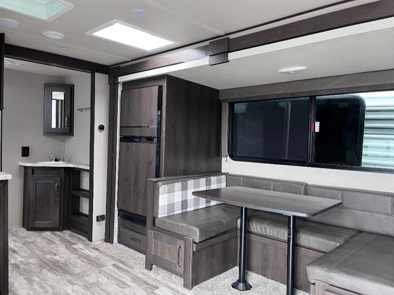 The customer-focused, quality-built Transcend Xplor travel trailers by Grand Design are your ticket to fun and adventure. Each model has been built to last through the seasons thanks to the Quadseal insulation, the double-insulated roof, and the heated and enclosed underbelly with suspended tanks. You will appreciate the power tongue jack when it comes time to set up, as well as the all-in-one utility center and the detachable power cord with an LED light. These models include many outlets throughout, USB ports to charge your gadgets, and an AM/FM/Bluetooth stereo with exterior speakers to keep you entertained. The interior of the Transcend Xplor will have you feeling right at home with upgraded residential furniture, a large, solid bedroom door, and residential countertops, and the list goes on!