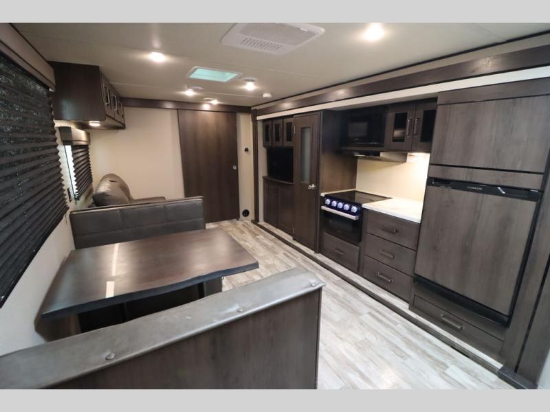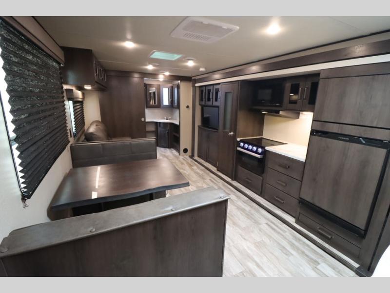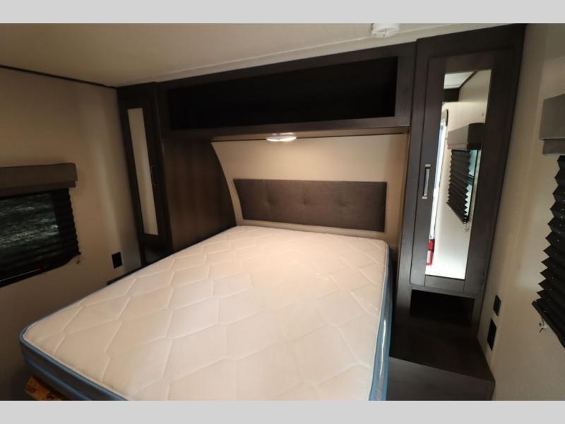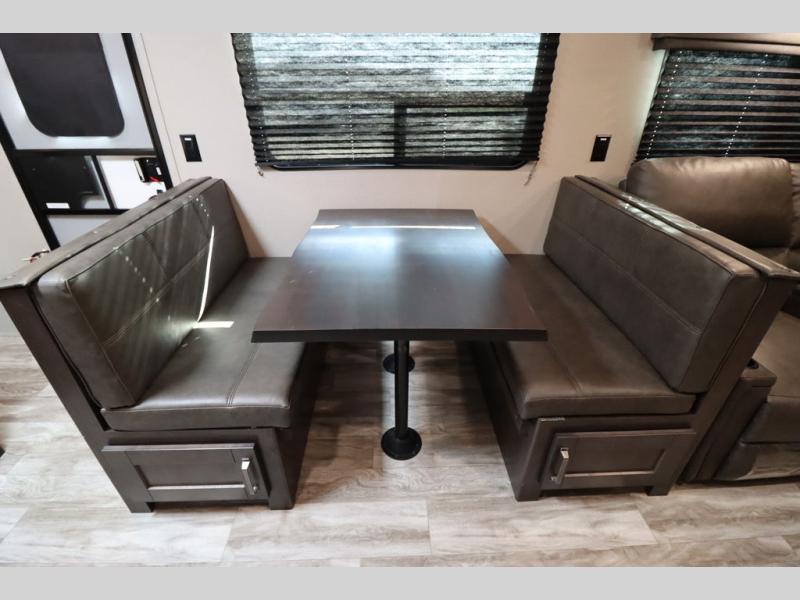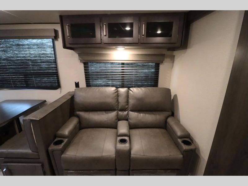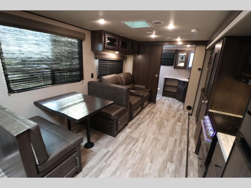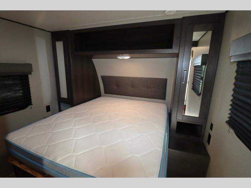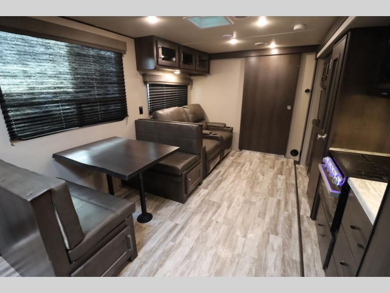 Your search for the perfect couple's trailer is over with this RV in tow! You will enjoy your own private bedroom up front with a queen bed, overhead storage, and TV prep if you choose to bring along your own television. The spacious full rear bath includes a linen closet and a walk-in shower to easily clean up each day. Relax on the theatre seating after a long day outdoors, or you can choose the optional tri-fold sofa if you need additional sleeping space. The booth dinette can also be used for an overnight guest or two little ones. This model also includes plenty of storage space and plenty of counter space to prep and cook at-home meals!