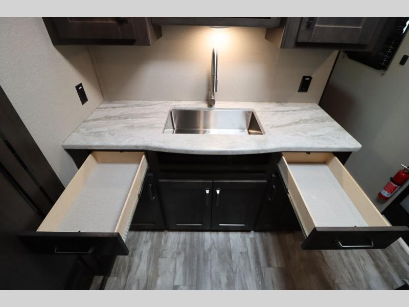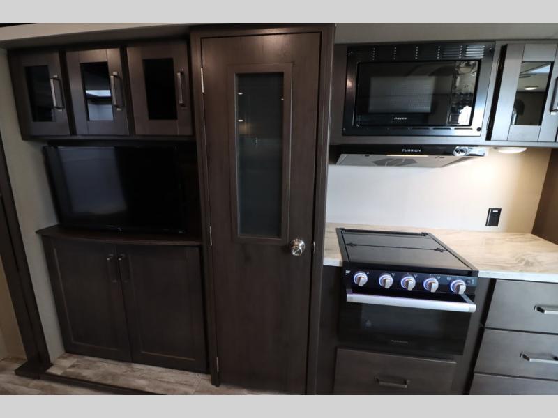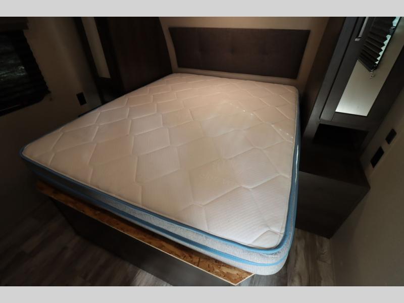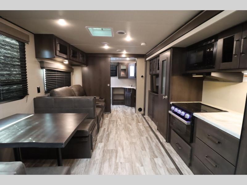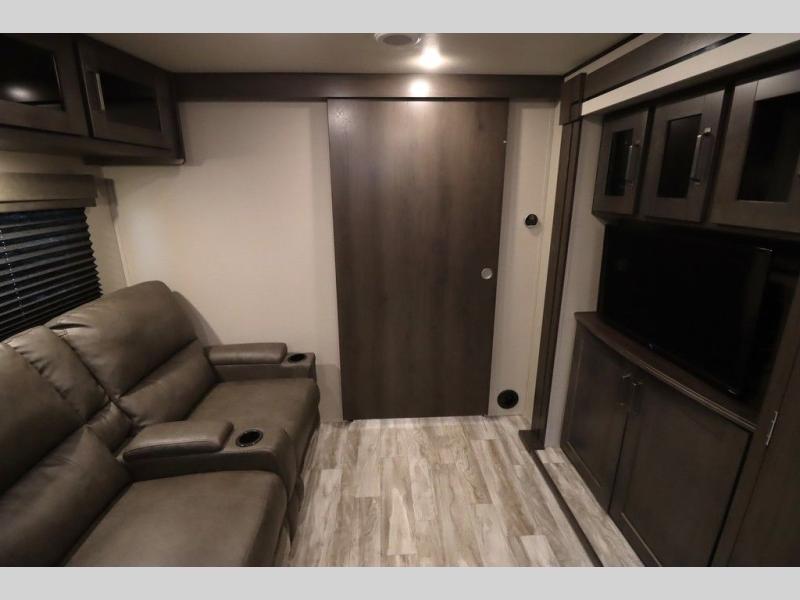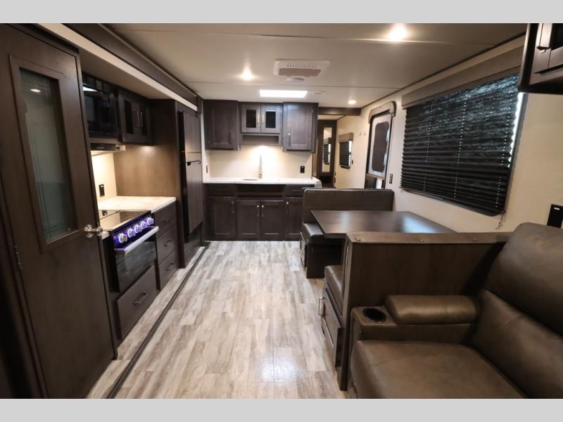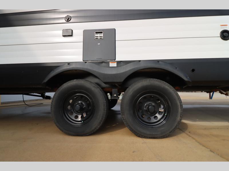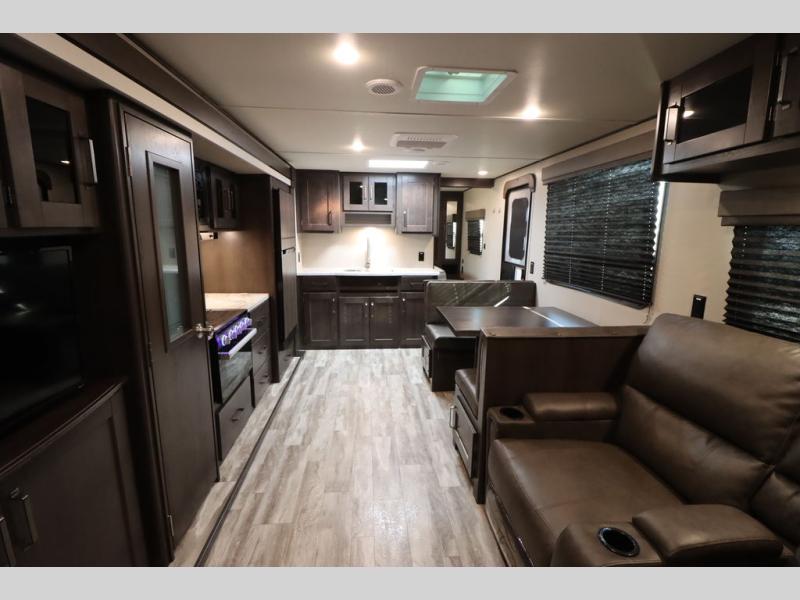 Your search for the perfect couple's trailer is over with this RV in tow! You will enjoy your own private bedroom up front with a queen bed, overhead storage, and TV prep if you choose to bring along your own television. The spacious full rear bath includes a linen closet and a walk-in shower to easily clean up each day. Relax on the theatre seating after a long day outdoors, or you can choose the optional tri-fold sofa if you need additional sleeping space. The booth dinette can also be used for an overnight guest or two little ones. This model also includes plenty of storage space and plenty of counter space to prep and cook at-home meals!