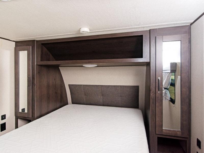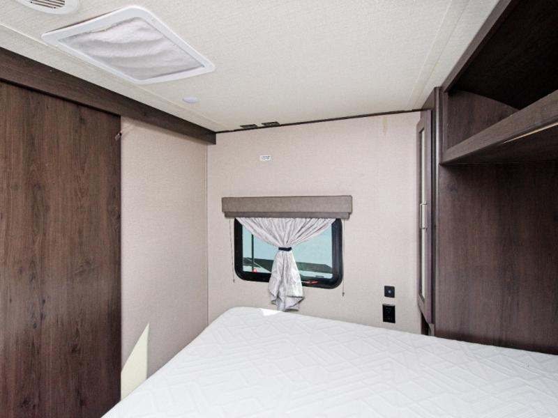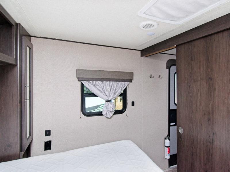 If you’re searching for the perfect couple’s travel trailer, the Grand Design Transcend Xplor 260RB checks every box. This thoughtfully designed RV features a private front bedroom complete with a queen bed, overhead storage, and TV prep, giving you a cozy retreat at the end of the day.