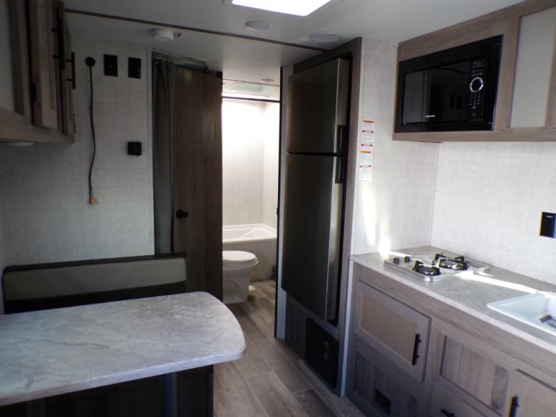 If you're looking for an affordable, lightweight travel trailer, you've found it in the Ameri-Lite Super Lite by Gulf Stream. These models may be lighter in weight, but they don't skimp out on comfortable features. Each unit includes high-performance vinyl flooring throughout, a white kitchen sink, craft-made cabinetry with designer pulls, plus fabric-wrapped box valances to make you feel right at home. The 16,000 BTU furnace and 13,500 BTU A/C will keep you comfortable in any season, and each model includes multiple USB ports for your tablet and phone and a 6' 8" ceiling height for added space. These models also include a 6-gallon gas DSI water heater, a central control panel to control your unit's functions, plus plenty of safety features you are sure to appreciate for your family. You can't go wrong with an Ameri-Lite Super Lite travel trailer. Choose your favorite floorplan today!