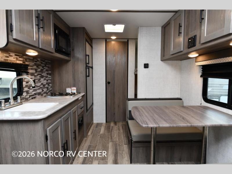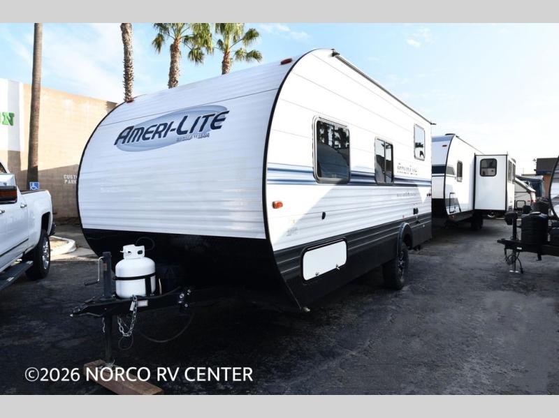 If you're looking for an affordable, lightweight travel trailer, you've found it in the Ameri-Lite Super Lite by Gulf Stream. These models may be lighter in weight, but they don't skimp out on comfortable features. Each unit includes high-performance vinyl flooring throughout, a white kitchen sink, craft-made cabinetry with designer pulls, plus fabric-wrapped box valances to make you feel right at home. The 16,000 BTU furnace and 13,500 BTU A/C will keep you comfortable in any season, and each model includes multiple USB ports for your tablet and phone and a 6' 8" ceiling height for added space. These models also include a 6-gallon gas DSI water heater, a central control panel to control your unit's functions, plus plenty of safety features you are sure to appreciate for your family. You can't go wrong with an Ameri-Lite Super Lite travel trailer. Choose your favorite floorplan today!