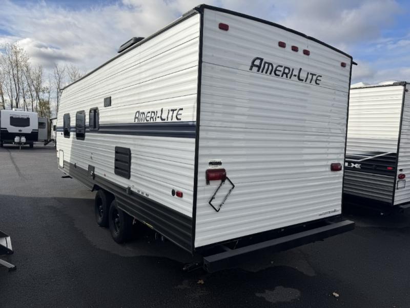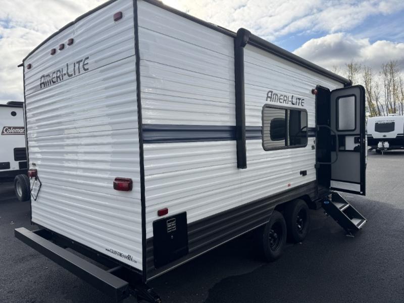 The Ameri-Lite Ultra Lite travel trailers by Gulf Stream are the perfect RV for families wanting to start their camping lifestyle, but not break the bank. These lightweight units include quality construction, such as a tubular steel cambered frame, strong wood roof decking, and full-width steel outriggers for maximum support. The front power hitch jack and four stabilizer jacks will make set-up hassle-free once you arrive at the campground, and you can put out the electric awning to rest in the shade when you're done. Each model includes convenient amenities, like the 13,500 BTU A/C, the 6 gallon DSI water heater, a central control panel, and multiple USB ports for your tablet, phone, and camera! The inside is designed to make you feel at home with radiant LED lighting, designer kitchen backsplash, pleated privacy shades, craft-made cabinetry, plus many more features. Start your RV lifestyle with an affordable, lightweight Ameri-Lite Ultra Lite travel trailer today!