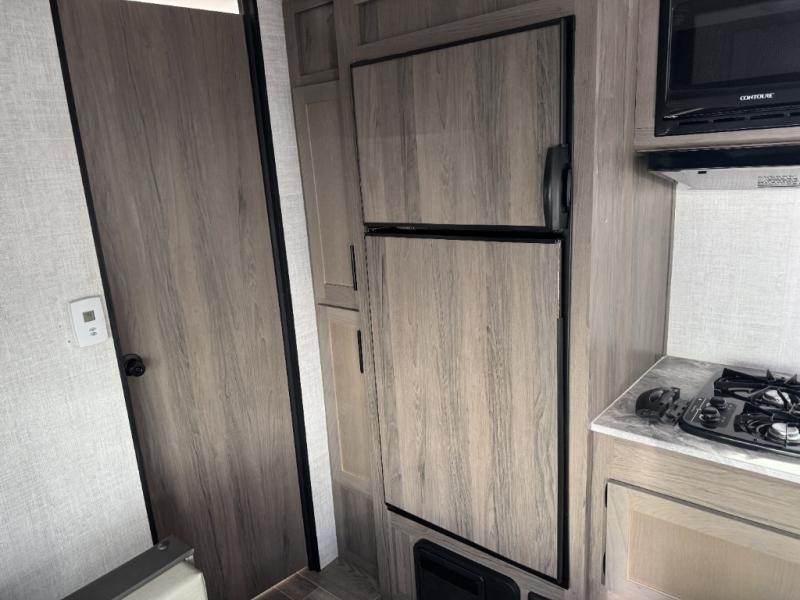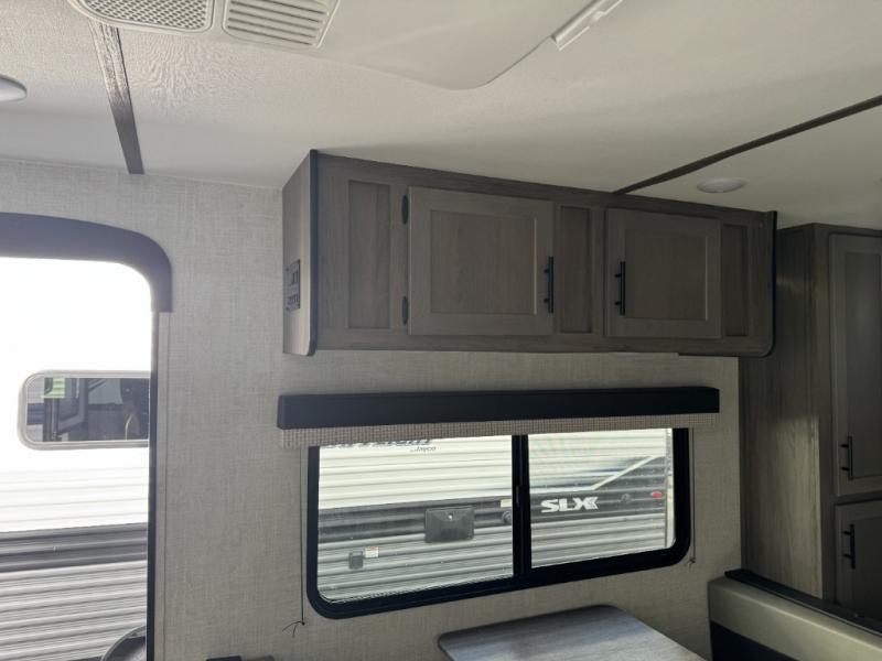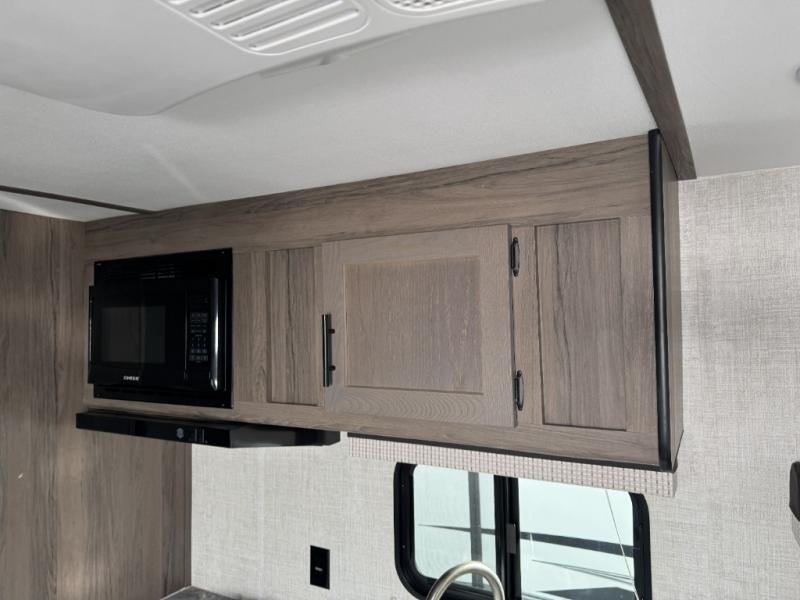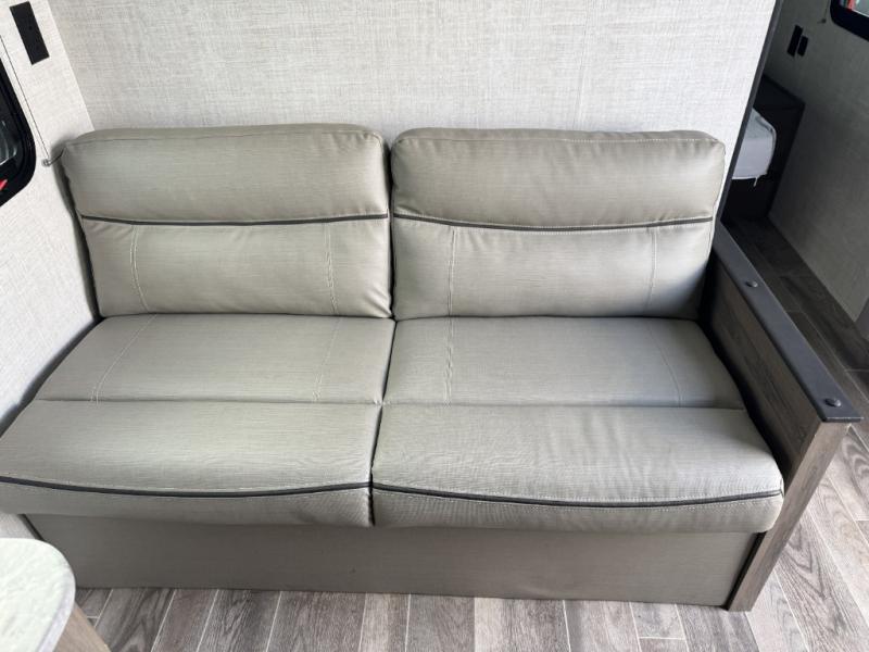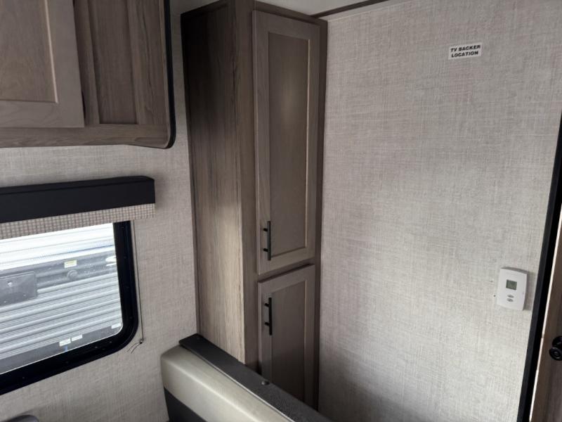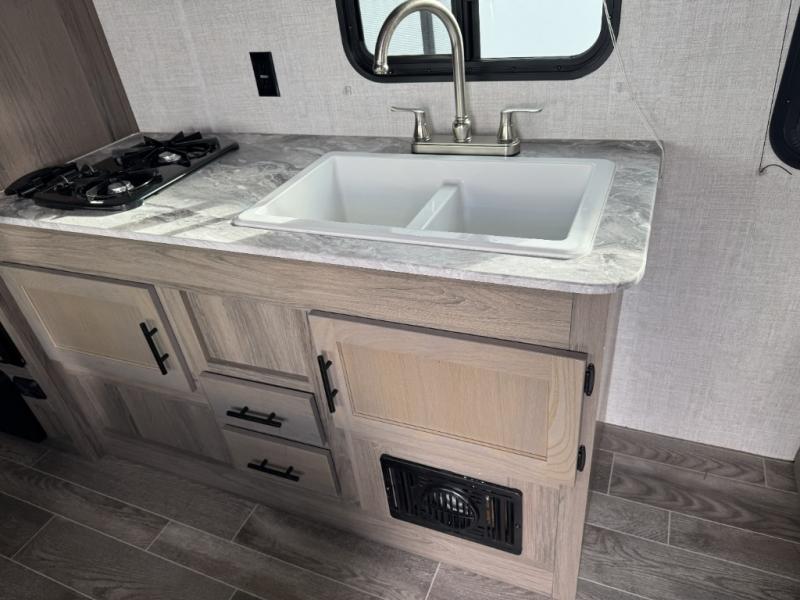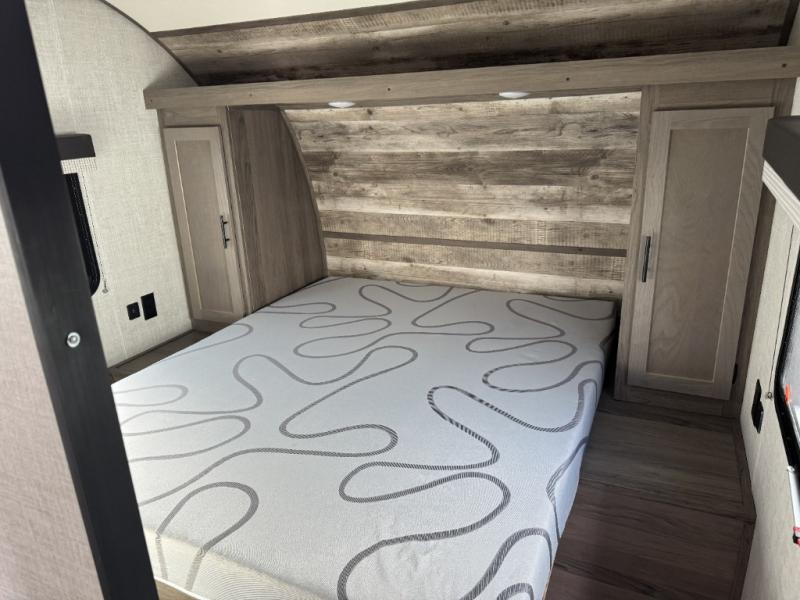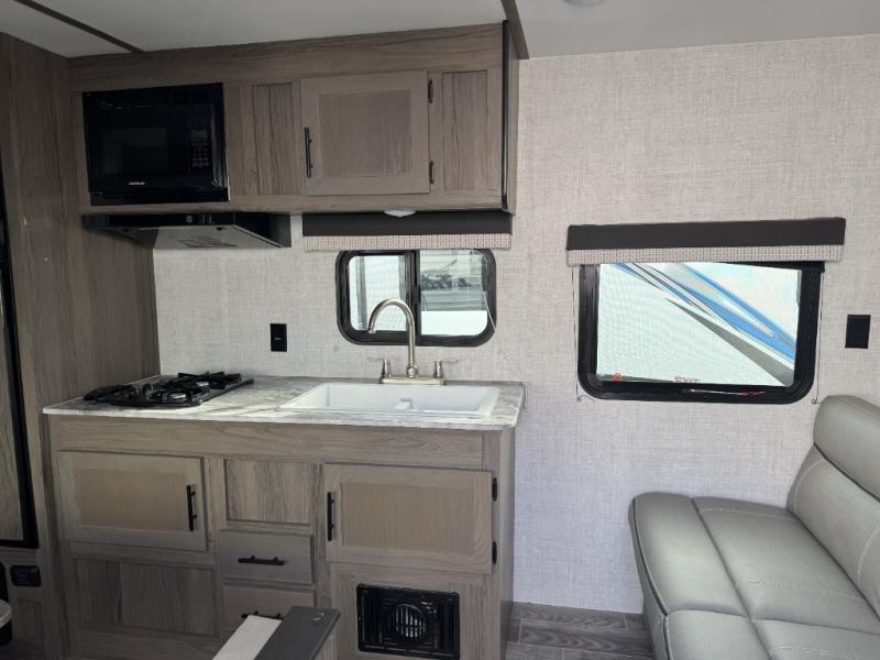 Easy-to-tow and easy to love, this travel trailer is perfect for you! You can prepare meals each day on the three burner cooktop, dine at the booth dinette, and clean up in the full rear bath that includes plenty of counter space. There is a front bedroom with a queen bed, plus two wardrobes on either side of the bed for convenience. Start camping today!