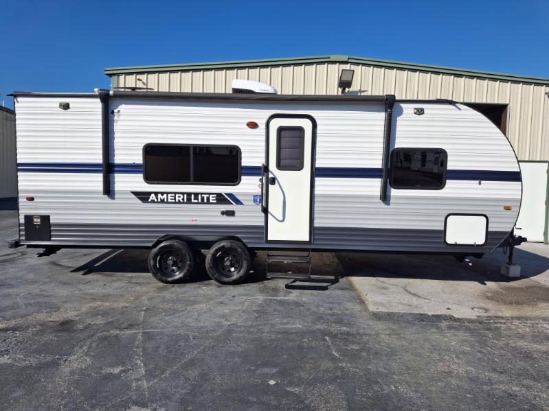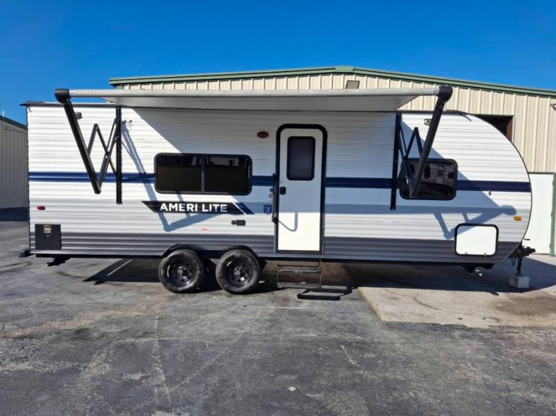 The Ameri-Lite Ultra Lite travel trailers by Gulf Stream are the perfect RV for families wanting to start their camping lifestyle, but not break the bank. These lightweight units include quality construction, such as a tubular steel cambered frame, strong wood roof decking, and full-width steel outriggers for maximum support. The front power hitch jack and four stabilizer jacks will make set-up hassle-free once you arrive at the campground, and you can put out the electric awning to rest in the shade when you're done. Each model includes convenient amenities, like the 13,500 BTU A/C, the 6 gallon DSI water heater, a central control panel, and multiple USB ports for your tablet, phone, and camera! The inside is designed to make you feel at home with radiant LED lighting, designer kitchen backsplash, pleated privacy shades, craft-made cabinetry, plus many more features. Start your RV lifestyle with an affordable, lightweight Ameri-Lite Ultra Lite travel trailer today!