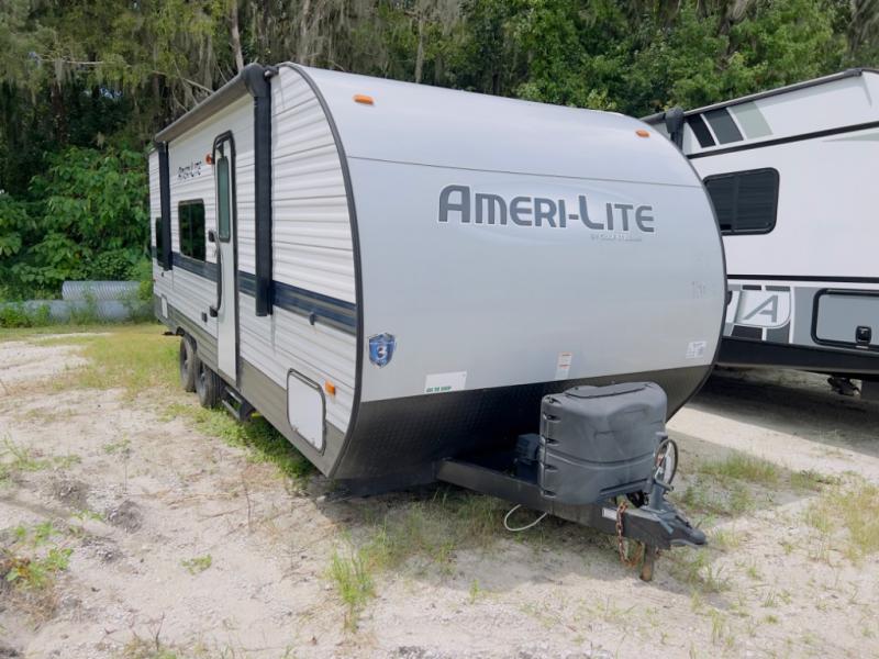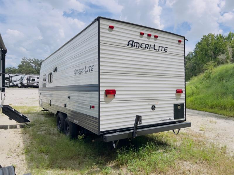 The Ameri-Lite Ultra Lite travel trailers by Gulf Stream are the perfect RV for families wanting to start their camping lifestyle, but not break the bank. These lightweight units include quality construction, such as a tubular steel cambered frame, strong wood roof decking, and full-width steel outriggers for maximum support. The front power hitch jack and four stabilizer jacks will make set-up hassle-free once you arrive at the campground, and you can put out the electric awning to rest in the shade when you're done. Each model includes convenient amenities, like the 13,500 BTU A/C, the 6 gallon DSI water heater, a central control panel, and multiple USB ports for your tablet, phone, and camera! The inside is designed to make you feel at home with radiant LED lighting, designer kitchen backsplash, pleated privacy shades, craft-made cabinetry, plus many more features. Start your RV lifestyle with an affordable, lightweight Ameri-Lite Ultra Lite travel trailer today!