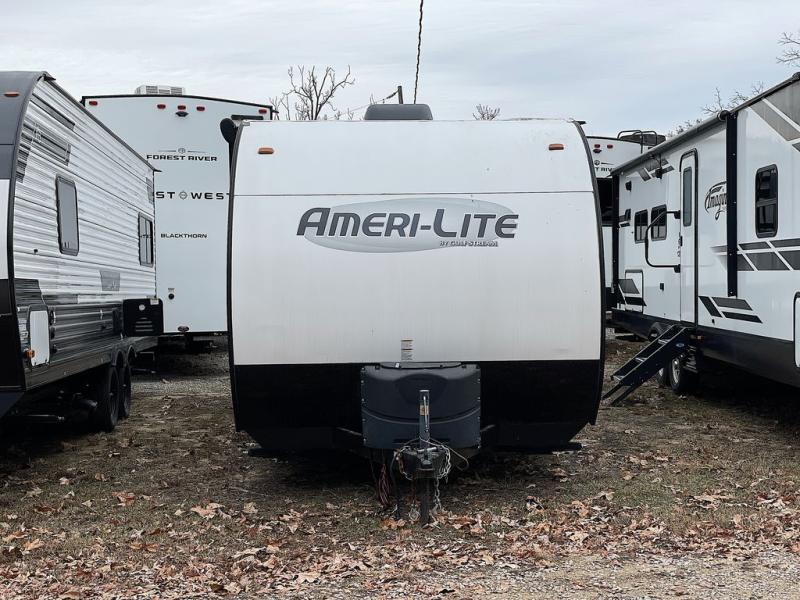 The Ameri-Lite Ultra Lite travel trailers by Gulf Stream are the perfect RV for families wanting to start their camping lifestyle, but not break the bank. These lightweight units include quality construction, such as a tubular steel cambered frame, strong wood roof decking, and full-width steel outriggers for maximum support. The front power hitch jack and four stabilizer jacks will make set-up hassle-free once you arrive at the campground, and you can put out the electric awning to rest in the shade when you're done. Each model includes convenient amenities, like the 13,500 BTU A/C, the 6 gallon DSI water heater, a central control panel, and multiple USB ports for your tablet, phone, and camera! The inside is designed to make you feel at home with radiant LED lighting, designer kitchen backsplash, pleated privacy shades, craft-made cabinetry, plus many more features. Start your RV lifestyle with an affordable, lightweight Ameri-Lite Ultra Lite travel trailer today!