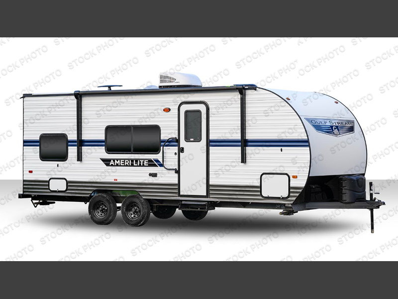 The Ameri-Lite Ultra Lite travel trailers by Gulf Stream are the perfect RV for families wanting to start their camping lifestyle, but not break the bank. These lightweight units include quality construction, such as a tubular steel cambered frame, strong wood roof decking, and full-width steel outriggers for maximum support. The front power hitch jack and four stabilizer jacks will make set-up hassle-free once you arrive at the campground, and you can put out the electric awning to rest in the shade when you're done. Each model includes convenient amenities, like the 13,500 BTU A/C, the 6 gallon DSI water heater, a central control panel, and multiple USB ports for your tablet, phone, and camera! The inside is designed to make you feel at home with radiant LED lighting, designer kitchen backsplash, pleated privacy shades, craft-made cabinetry, plus many more features. Start your RV lifestyle with an affordable, lightweight Ameri-Lite Ultra Lite travel trailer today!