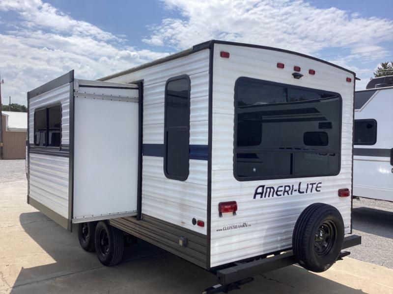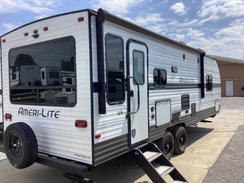 The Ameri-Lite Ultra Lite travel trailers by Gulf Stream are the perfect RV for families wanting to start their camping lifestyle, but not break the bank. These lightweight units include quality construction, such as a tubular steel cambered frame, strong wood roof decking, and full-width steel outriggers for maximum support. The front power hitch jack and four stabilizer jacks will make set-up hassle-free once you arrive at the campground, and you can put out the electric awning to rest in the shade when you're done. Each model includes convenient amenities, like the 13,500 BTU A/C, the 6 gallon DSI water heater, a central control panel, and multiple USB ports for your tablet, phone, and camera! The inside is designed to make you feel at home with radiant LED lighting, designer kitchen backsplash, pleated privacy shades, craft-made cabinetry, plus many more features. Start your RV lifestyle with an affordable, lightweight Ameri-Lite Ultra Lite travel trailer today!