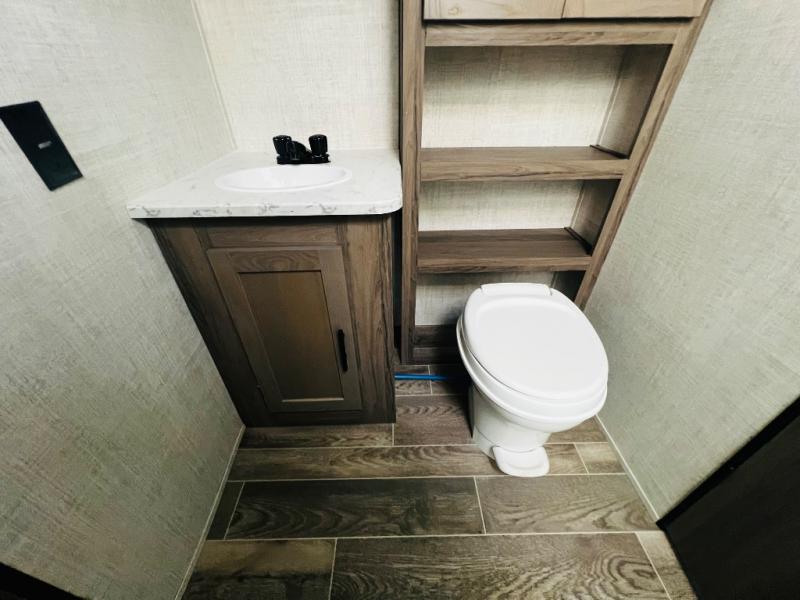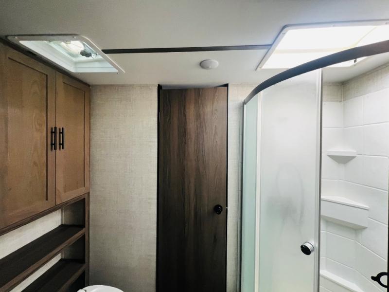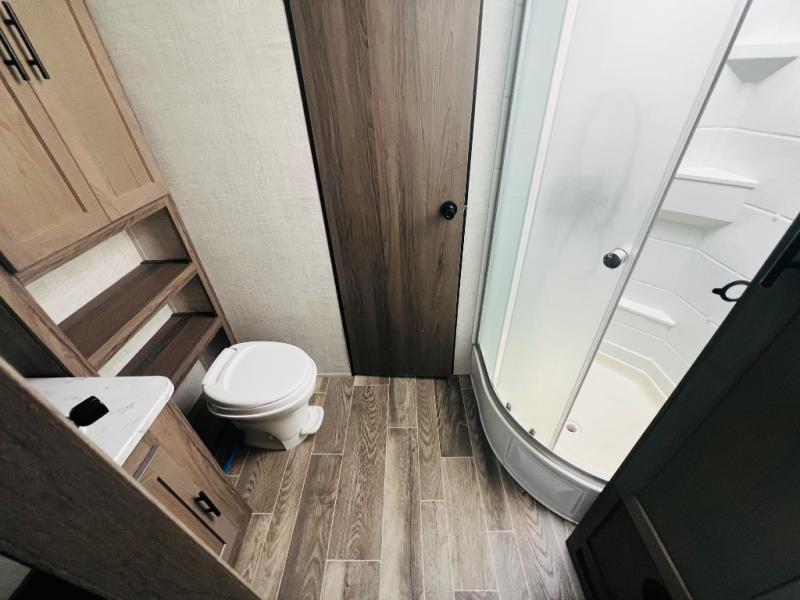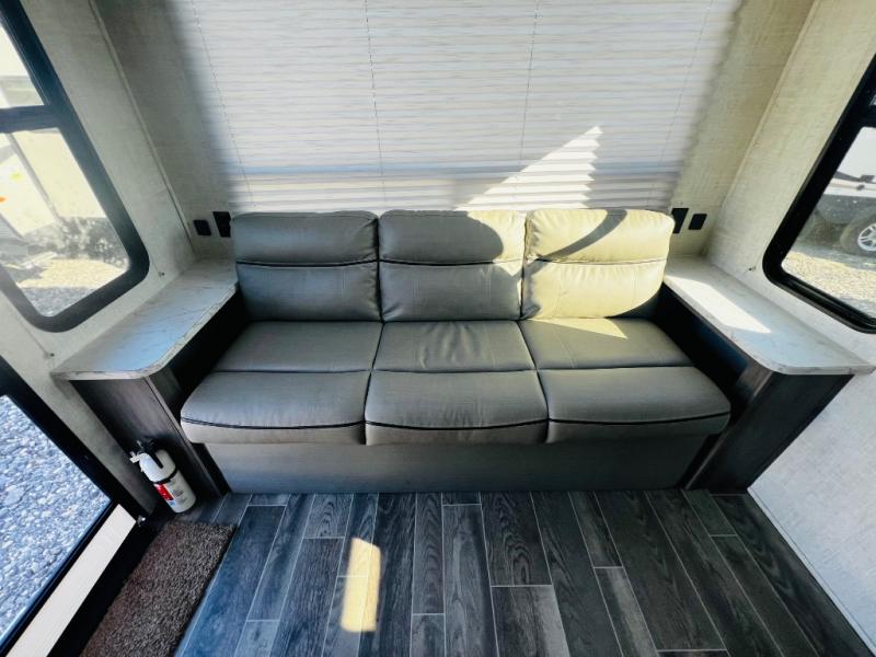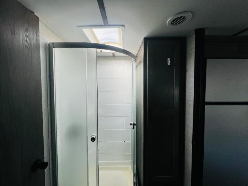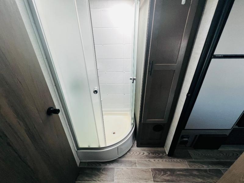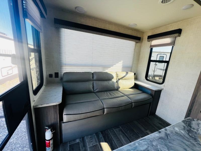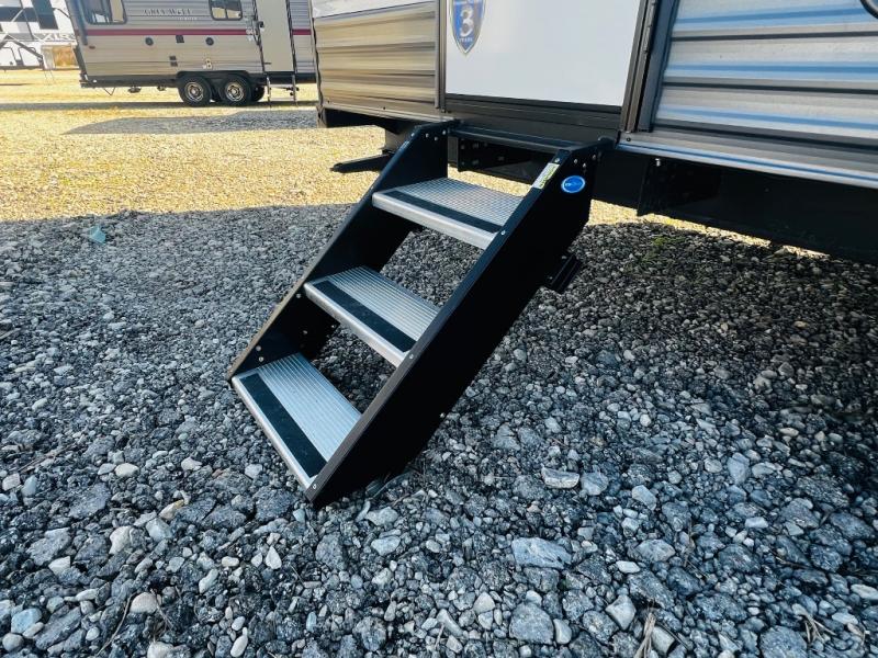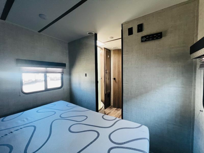Make this comfortable travel trailer your home-away-from-home on the weekends. You will love having your own master bedroom up front with a queen bed and dual wardrobes for your clothes. The walk-through bath is spacious, allowing you to easily clean up each day. Your guests can sleep on the jackknife sofa or U-shaped dinette, and the fireplace here will make it feel more like home. This model includes all the appliances needed each day to prepare home-cooked meals, including a three burner cooktop, a microwave oven, and a 10.7 cu. ft. Everchill refrigerator/freezer. There is even an outdoor beverage center with a refrigerator and an icemaker to entertain guests!