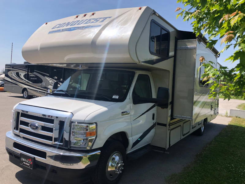 Each one of these Gulf Stream RV Conquest Class C gas motorhomes is built with a Cradle of Strength® on either the Ford E350 or E450 chassis depending on the model! Their construction also consists of a welded aluminum perimeter frame, a seamless EPDM rubber roof, and a high-gloss fiberglass exterior with Azdel synthetic substrate in the walls to prevent rotting. The included Conquest Luxury package comes with high-performance vinyl flooring throughout for an easier clean, all stainless steel appliances, and an AM/FM/CD stereo with built-in monitor and back-up camera. It also adds exterior conveniences like upgraded exterior lighting, upgraded exterior graphics, a friction-hinge entry door, and an electric awning with LED lights to relax under whether day or night!