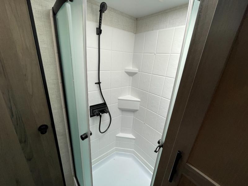 Enjoy the convenience of a full bathroom with a shower, vanity, and toilet — perfect for campsites without full facilities, getting ready before dinner, or freshening up before hitting the road.