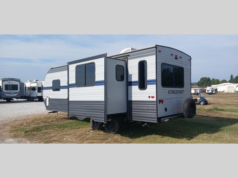 With any Kingsport Ultra Lite by Gulf Stream, you can enjoy a lightweight travel trailer on a budget with plenty of standard features to enjoy, and the required Lite Value Package offers convenience, comfort and Tech-Ready upgrades such as Wi-Fi and satellite TV ready connections, solar panel prep, back-up camera hookups, and multiple USB ports to keep the electronics charged. Each is constructed with a one-piece synthetic vinyl roof, fiberglass insulation hand-cut and glued in place, Butyl caulk for better seal and fewer streaks, and full-width steel outriggers for superior strength and support. Inside is easy to care for with vinyl wallcovering and high-performance vinyl flooring throughout, plus you will enjoy the upgraded furniture package, the designer backsplash in the kitchen, and the craft-made cabinetry with designer drawer and door pulls. Make your selection now!