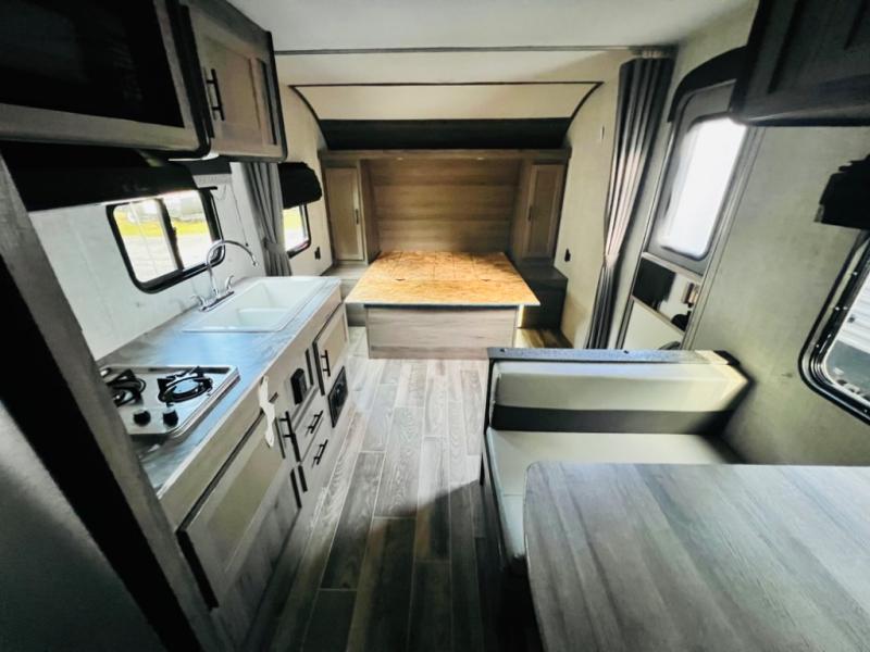 With any Kingsport Ultra Lite by Gulf Stream, you can enjoy a lightweight travel trailer on a budget with plenty of standard features to enjoy, and the required Lite Value Package offers convenience, comfort and Tech-Ready upgrades such as Wi-Fi and satellite TV ready connections, solar panel prep, back-up camera hookups, and multiple USB ports to keep the electronics charged. Each is constructed with a one-piece synthetic vinyl roof, fiberglass insulation hand-cut and glued in place, Butyl caulk for better seal and fewer streaks, and full-width steel outriggers for superior strength and support. Inside is easy to care for with vinyl wallcovering and high-performance vinyl flooring throughout, plus you will enjoy the upgraded furniture package, the designer backsplash in the kitchen, and the craft-made cabinetry with designer drawer and door pulls. Make your selection now!