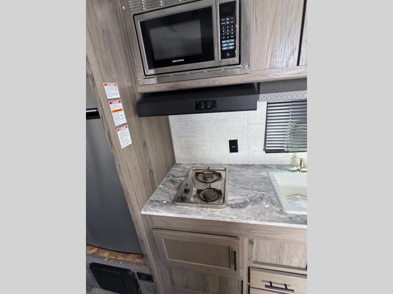 With any Kingsport Ultra Lite by Gulf Stream, you can enjoy a lightweight travel trailer on a budget with plenty of standard features to enjoy, and the required Lite Value Package offers convenience, comfort and Tech-Ready upgrades such as Wi-Fi and satellite TV ready connections, solar panel prep, back-up camera hookups, and multiple USB ports to keep the electronics charged. Each is constructed with a one-piece synthetic vinyl roof, fiberglass insulation hand-cut and glued in place, Butyl caulk for better seal and fewer streaks, and full-width steel outriggers for superior strength and support. Inside is easy to care for with vinyl wallcovering and high-performance vinyl flooring throughout, plus you will enjoy the upgraded furniture package, the designer backsplash in the kitchen, and the craft-made cabinetry with designer drawer and door pulls. Make your selection now!