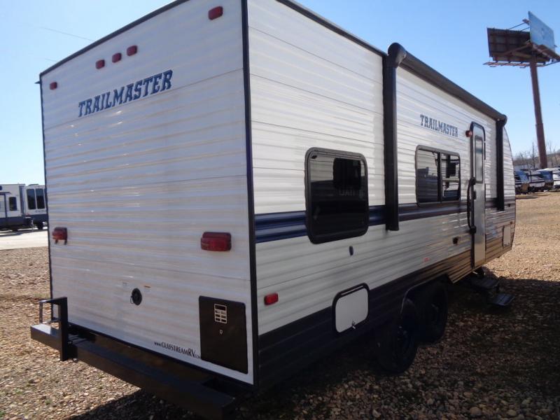 The Trailmaster Ultra-Lite by Gulf Stream are affordable, easy to tow travel trailers that allow you to enjoy the camping lifestyle in comfort. For superior strength and support each model is constructed with full-width steel outriggers and a tubular steel cambered frame. The exterior includes a diamond plate lower front to help protect your trailer from rock and debris during transport, and the one-piece synthetic vinyl roof will be easy to clean after a weekend in the woods. Inside, you'll feel right at home with features such as, a queen bed with a bedspread, full kitchen and bath amenities, pleated privacy shades, plus radiant LED interior lighting. These travel trailers also include a 13,500 BTU A/C and a 16,000 BTU furnace so you can stay comfortable year around!