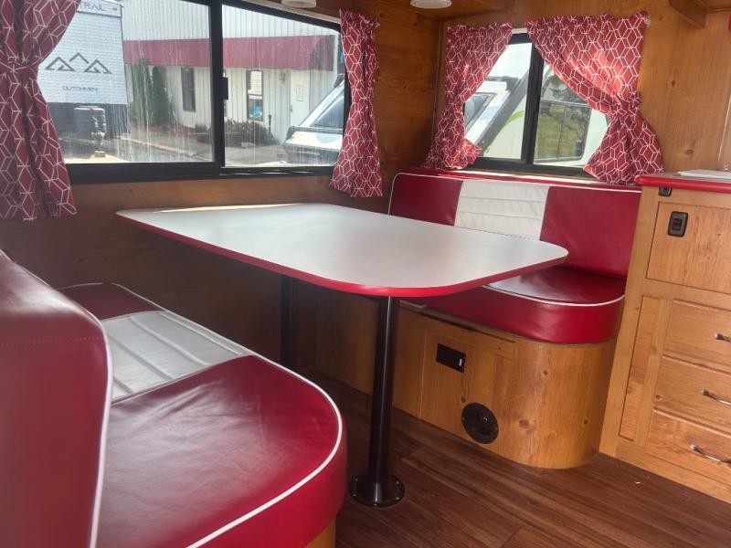If you enjoy a more classic look for an RV, you'll love this Vintage Cruiser 19ERD. The rear booth dinette is surrounded by windows for bright, open views, and you'll find overhead storage here for dry goods or snacks. The chef of your group will have a two burner cooktop and a microwave oven to prepare meals, and you may want to add an optional 19" LED HDTV to keep your guests busy at the dinette while dinner is being made. The private toilet and sink is right across the hall from the 24" x 36" shower so two people can freshen up at once. How convenient! This model also features a semi-private front bedroom with a privacy curtain for your own space, plus an RV queen bed and dual shirt closets to keep your clothes tidy!
