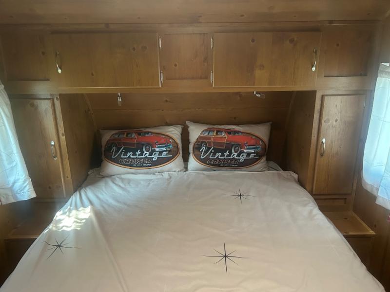With any Vintage Cruiser by Gulf Stream you will be taken back to the fun of the 50's with vintage exterior graphics and classic interiors. Each model is constructed with a six-sided welded aluminum frame, vacuum bonded sidewalls with Azdel, and a vintage painted bumper you are sure to love. You may like to choose the optional "Woody" Package that includes an Oyster painted A-frame, Hickory Saddle floor vinyl, Southern Pine Sidewalls, and more rustic cabin features. The Vintage Cruiser travel trailers include high-performance vinyl flooring, LED interior ceiling lights, a seamless tub/shower surround, and vintage flat cabinet doors to name a few comforts you'll find throughout. These models are also prewired for roof A/C and come with a standard 20,000 BTU furnace or a 16,000 BTU furnace, depending on the model you choose. Nostalgia is waiting for you with a Vintage Cruiser!