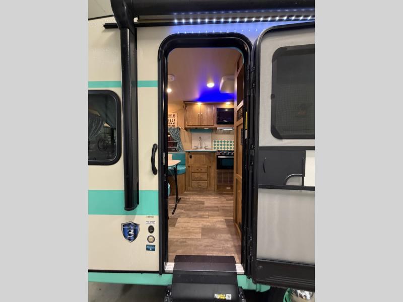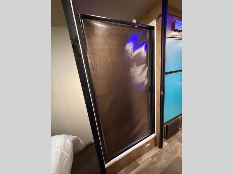 **TURQUOISE EXTERIOR, TURQUOISE & ROANOKE INTERIOR**LIKE-NEW,ONE OWNER**FREE STORAGE UNTIL SPRING 2026**UPGRADED FABRIC SHOWER DOOR**