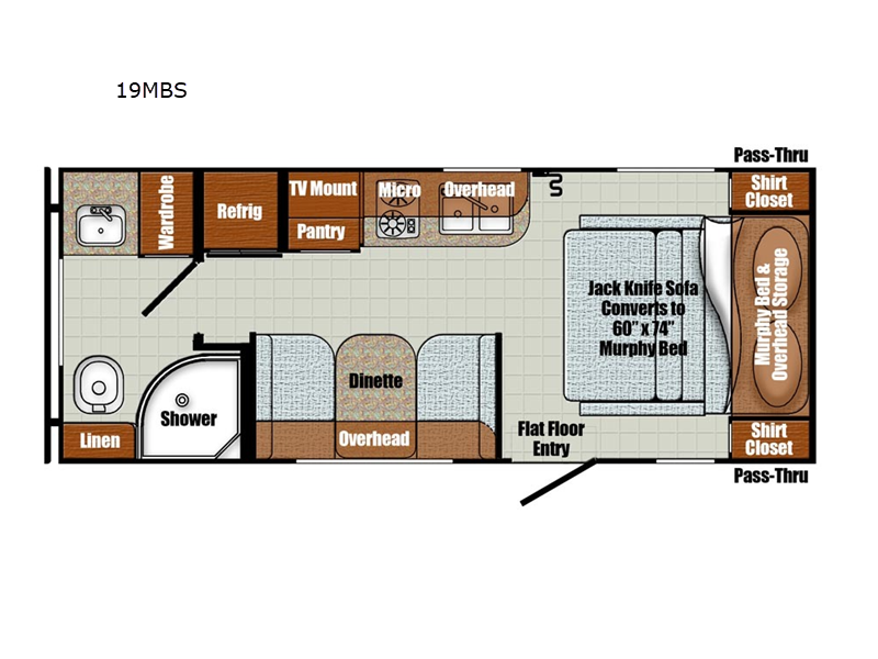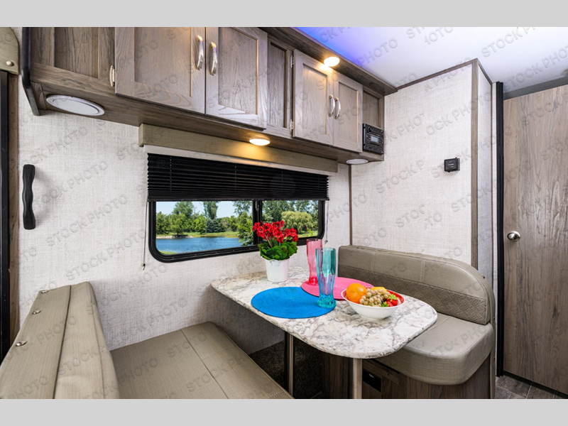 A flat floor entry helps you to safely enter and exit this travel trailer! The front jackknife sofa converts into a Murphy bed so you can have versatile living, and there is a privacy curtain to draw at night. The booth dinette can also transform into a sleeping space for one adult or maybe two small children when you're not using it to enjoy a meal or play a card game. Stay clean and fresh in the rear full bathroom with a shower, a linen closet, and plenty of countertop space around the sink!