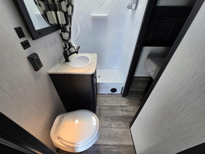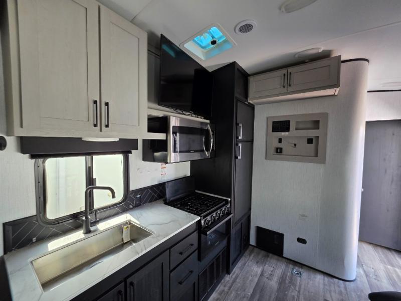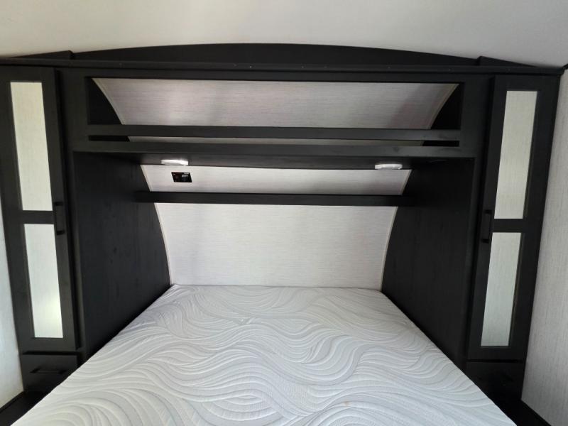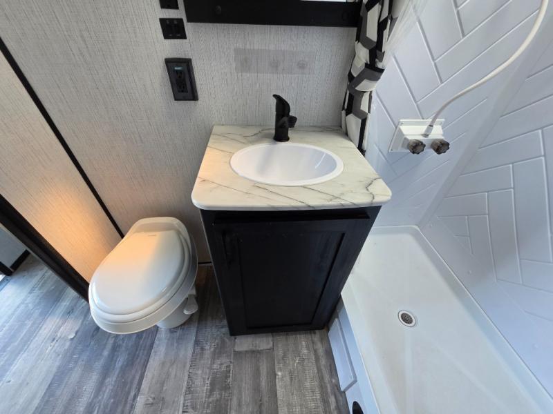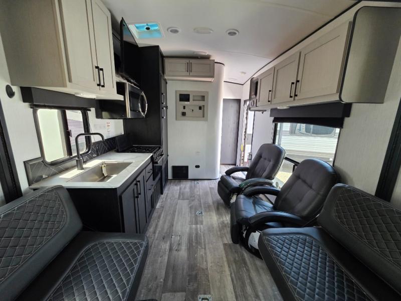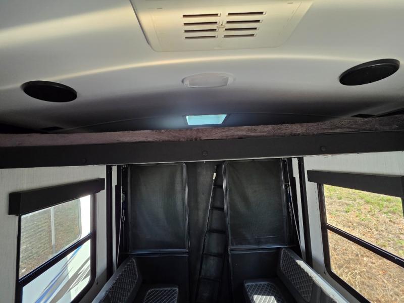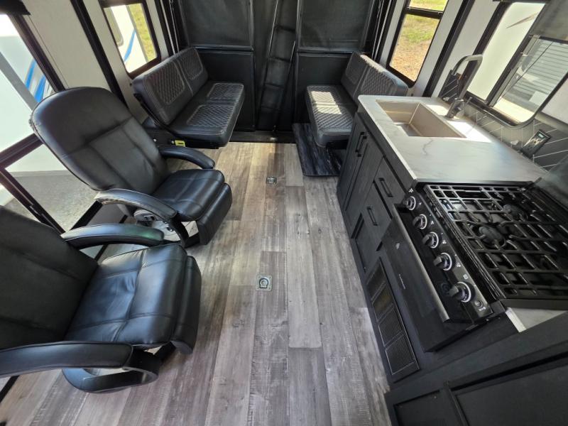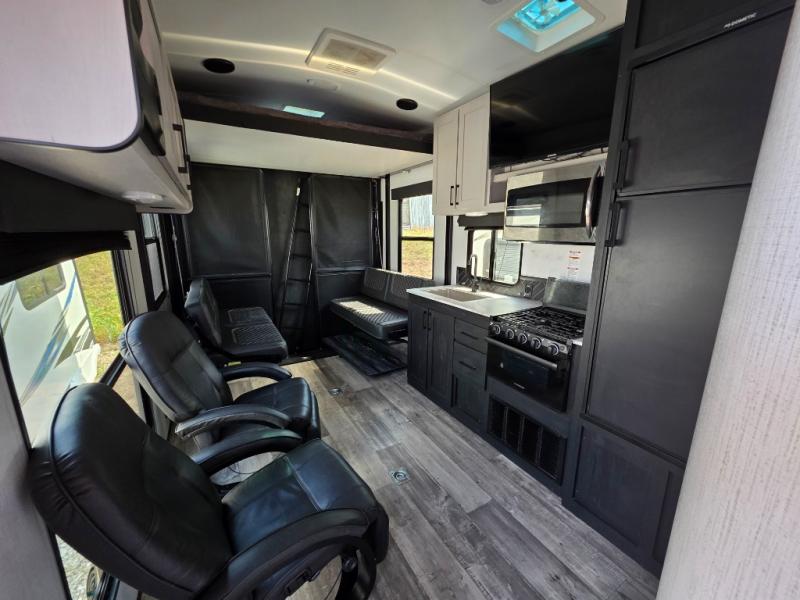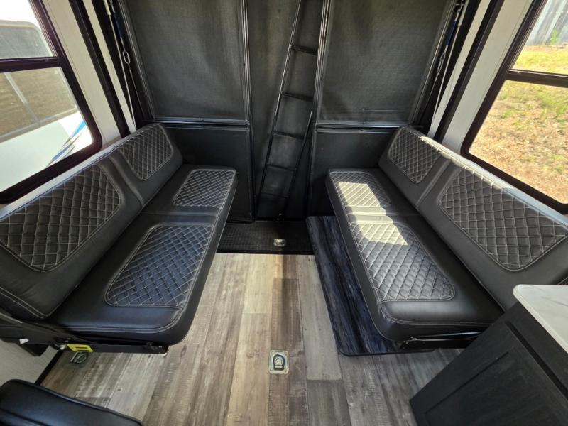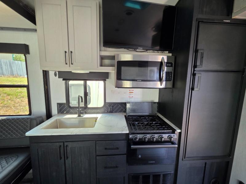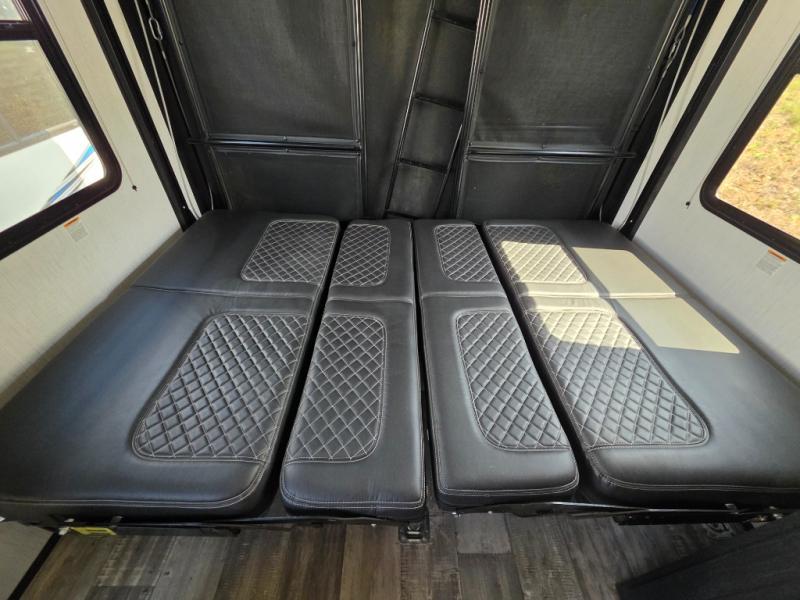 Are you looking to amp up your adventures? Let this Fuel toy hauler do it for you! It has plenty of space to bring along a golf cart, ATV, four-wheeler, or kayaks, and it has all of the essentials to help you live the way you're used to living. There is a full kitchen complete with a stainless steel package, microwave, three-burner range, and 8-cubic foot refrigerator, and the dual-entry bathroom offers you a shower, toilet, and vanity so that you can stay fresh through any trip. You'll be able to sleep like a baby on the king-size bed each night, and you also have extra sleeping space with the power queen bunk and opposing sofas back in the garage.