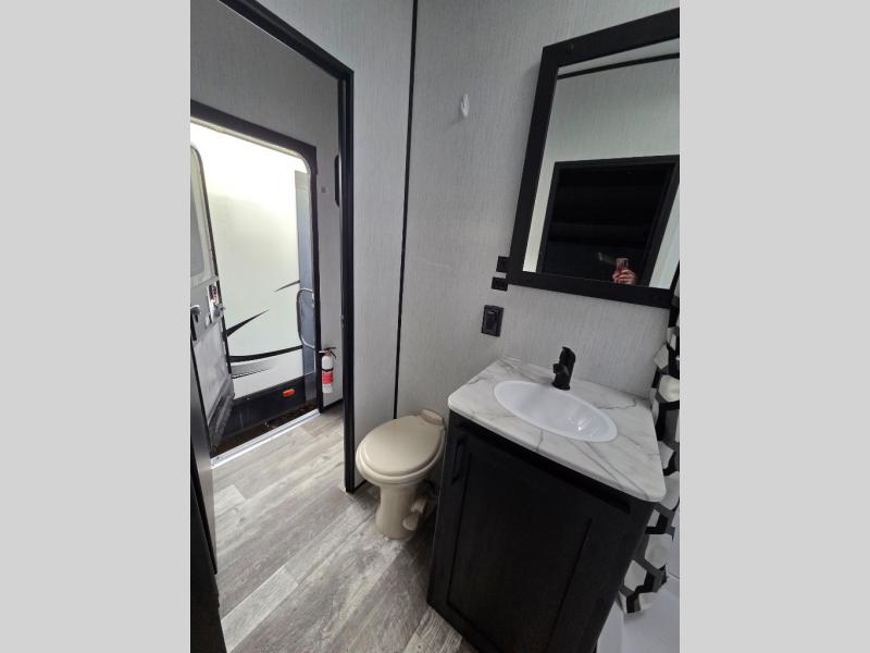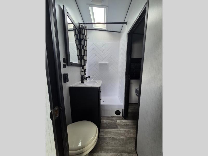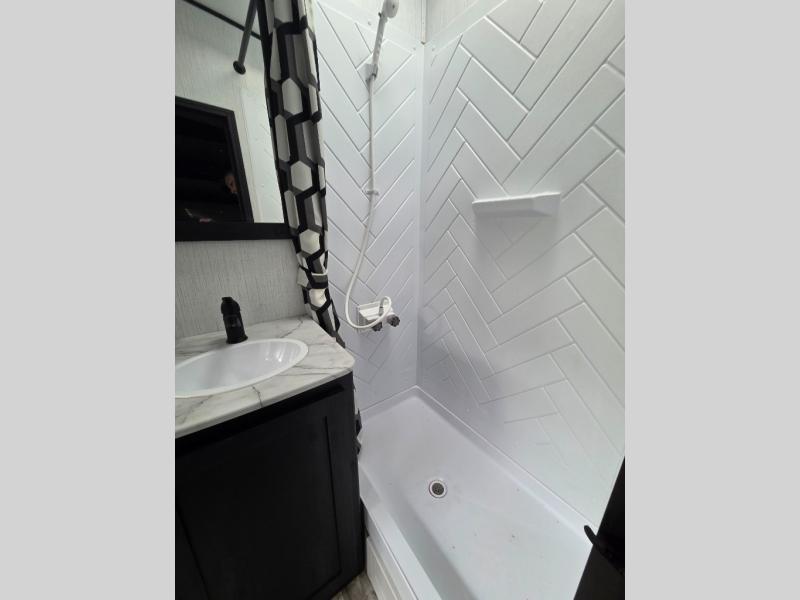 Are you looking to amp up your adventures? Let this Fuel toy hauler do it for you! It has plenty of space to bring along a golf cart, ATV, four-wheeler, or kayaks, and it has all of the essentials to help you live the way you're used to living. There is a full kitchen complete with a stainless steel package, microwave, three-burner range, and 8-cubic foot refrigerator, and the dual-entry bathroom offers you a shower, toilet, and vanity so that you can stay fresh through any trip. You'll be able to sleep like a baby on the king-size bed each night, and you also have extra sleeping space with the power queen bunk and opposing sofas back in the garage.