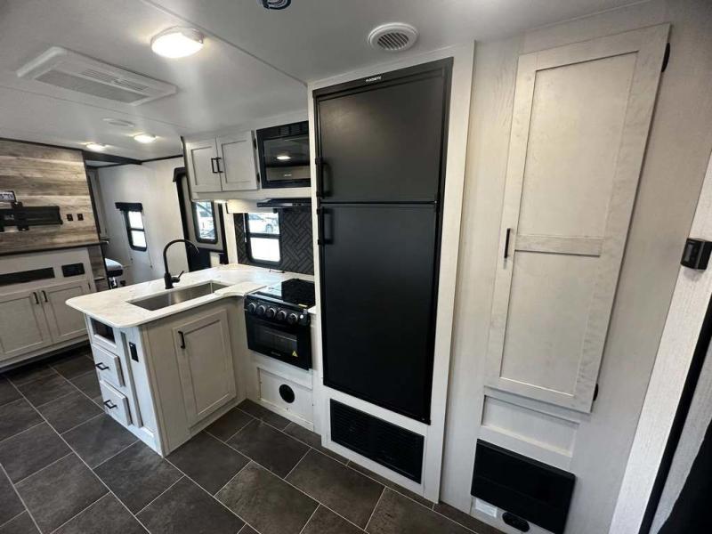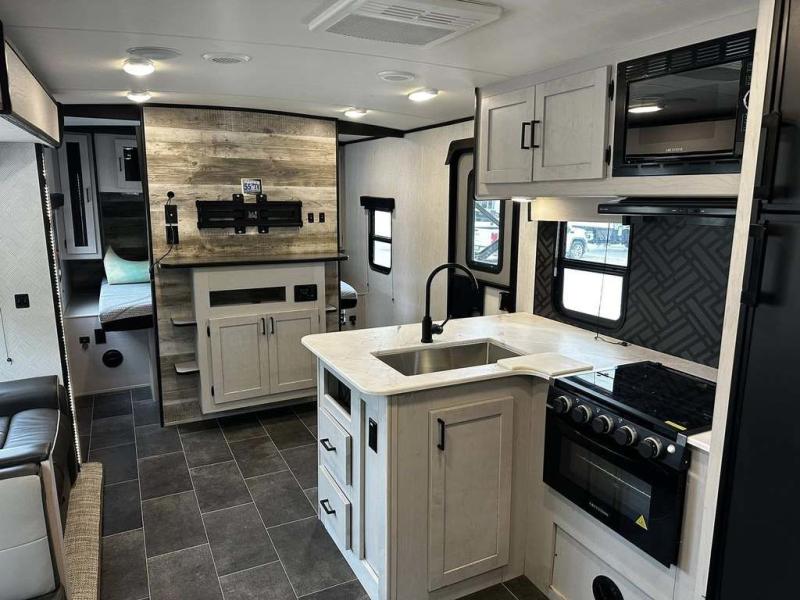 The Heartland Mallard travel trailer is quite impressive with its innovative features! The flip-down exterior steps and glow-in-the-dark graphics are some of the top exterior features, and the all-new Master Chef kitchen with Infinity edge countertops and stainless steel undermount sink is one of the top interior features that will make camping life easier. The forced-air heated and enclosed underbelly is a great feature that protects your trailer from the outside weather, and the Wide Traxx axle system, leaf spring suspension, E-Z lube hubs, and aluminum rims all work together to give you a great ride to the campsite. The Mallard has also been prepped for a solar panel, Wi-Fi, and a back-up camera, and it also has a cable-ready hook-up.