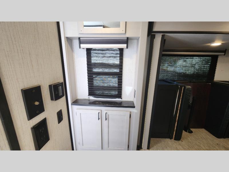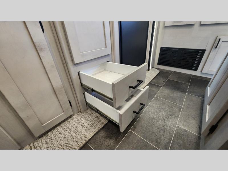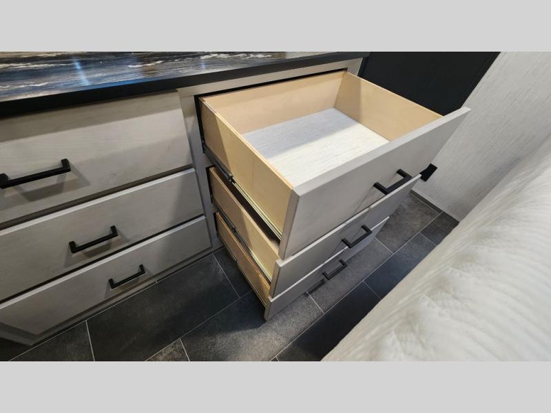 Dual opposing slide-outs create open-concept living space