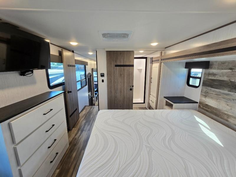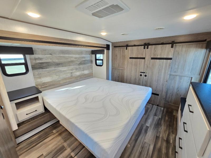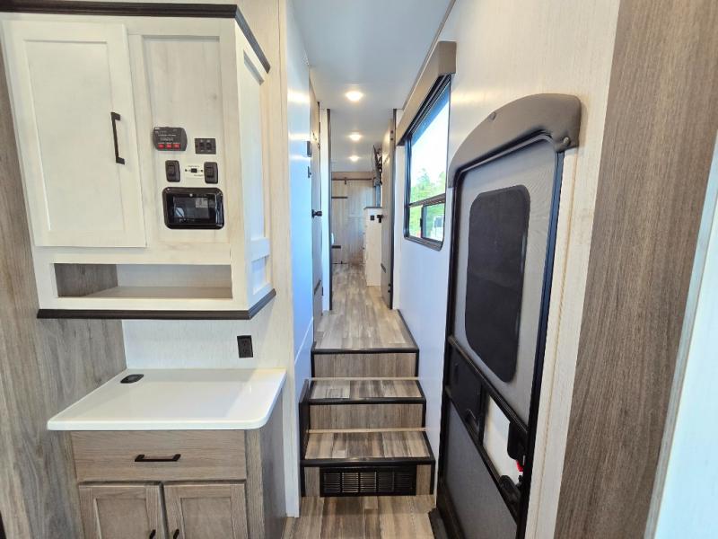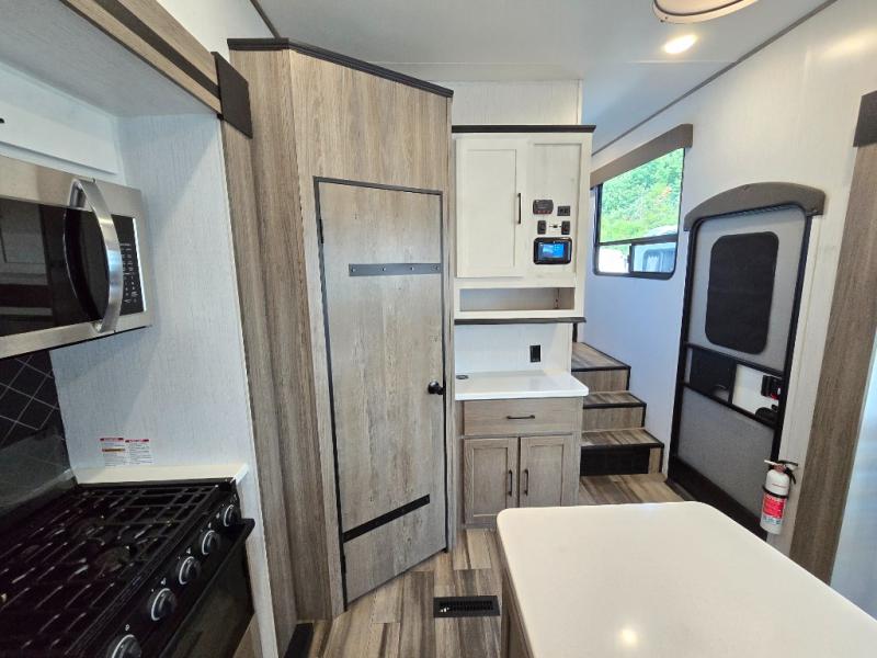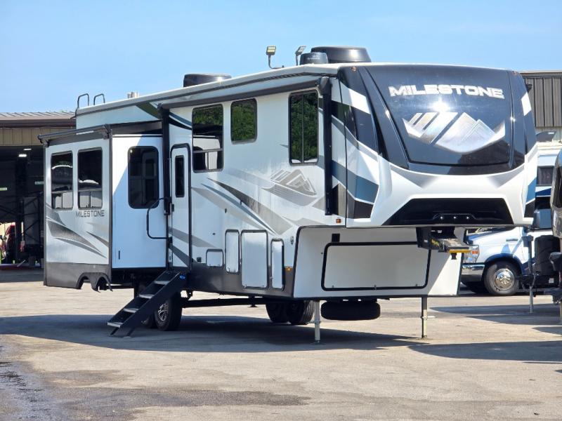 The Heartland Milestone is a full-profile luxury fifth wheel that is ready to help you make the most of your adventures! You will find an anti-chucking rotoflex 2" receiver hitch to help you tow like a pro, and there is a 50W solar panel with inverter prep to keep you prepared for off-grid fun. The upgraded MORryde solid step with quick-adjust system will help you enter your unit with ease, and the X1 integrated auto-leveling comes standard to help you keep your unit secure while camping. The interior kitchen has some great features, like anti-microbial solid-surface countertops and hardwood drawers with full-extension drawer guides, and there is Wi-Fi prep with wireless charging ports throughout each unit.