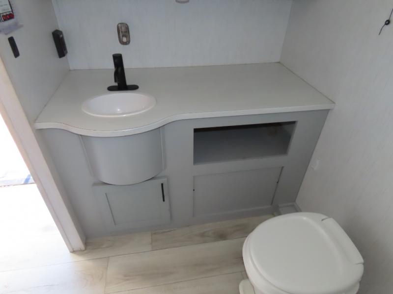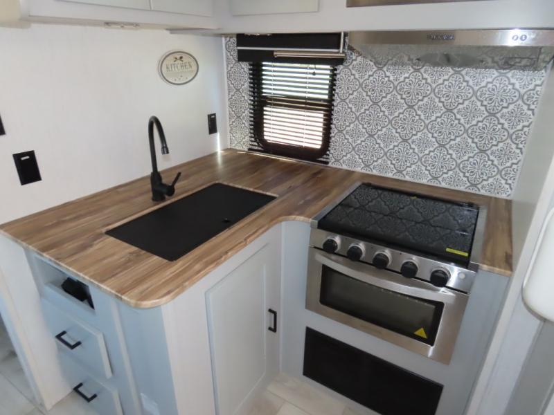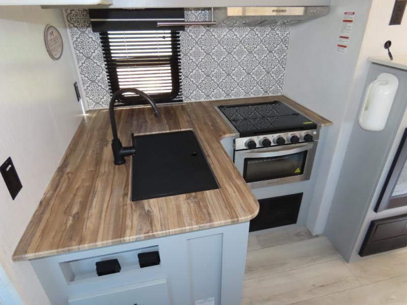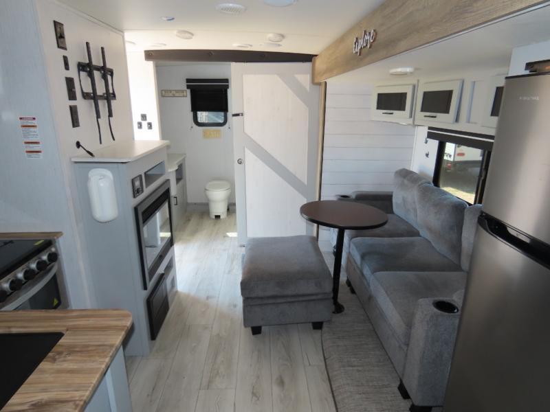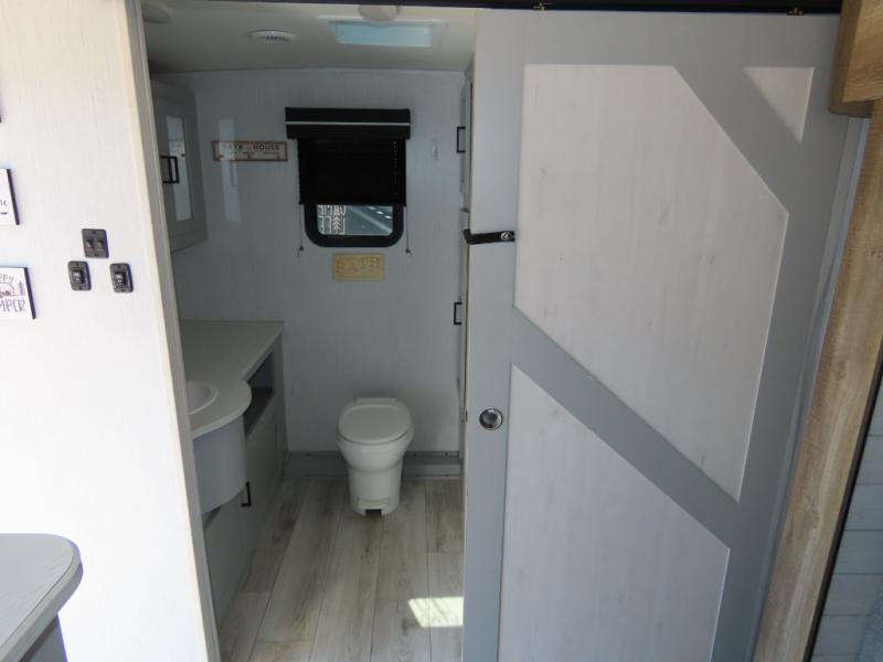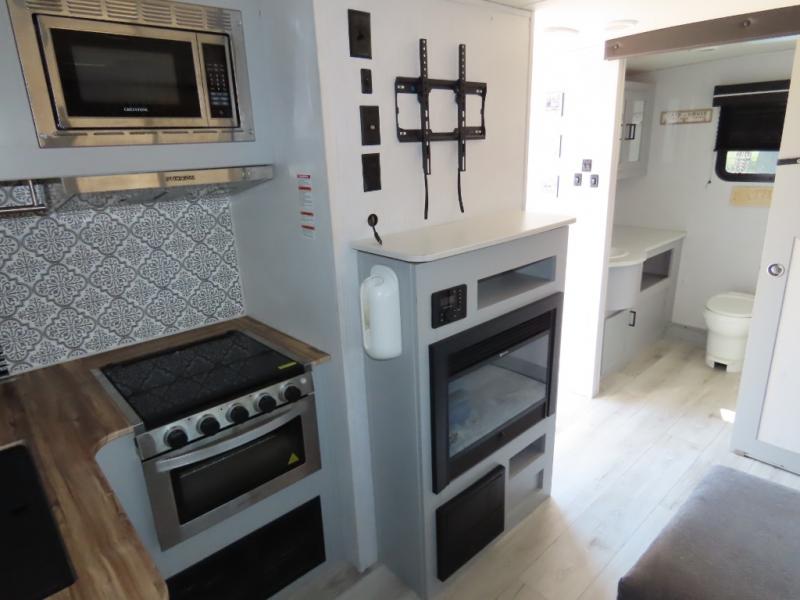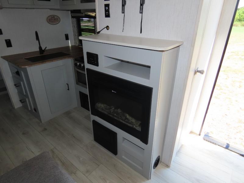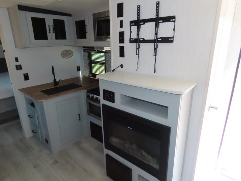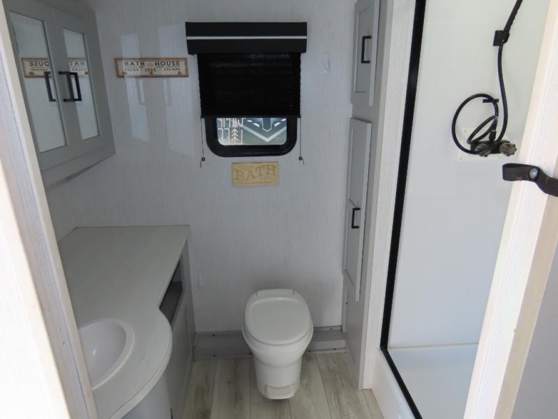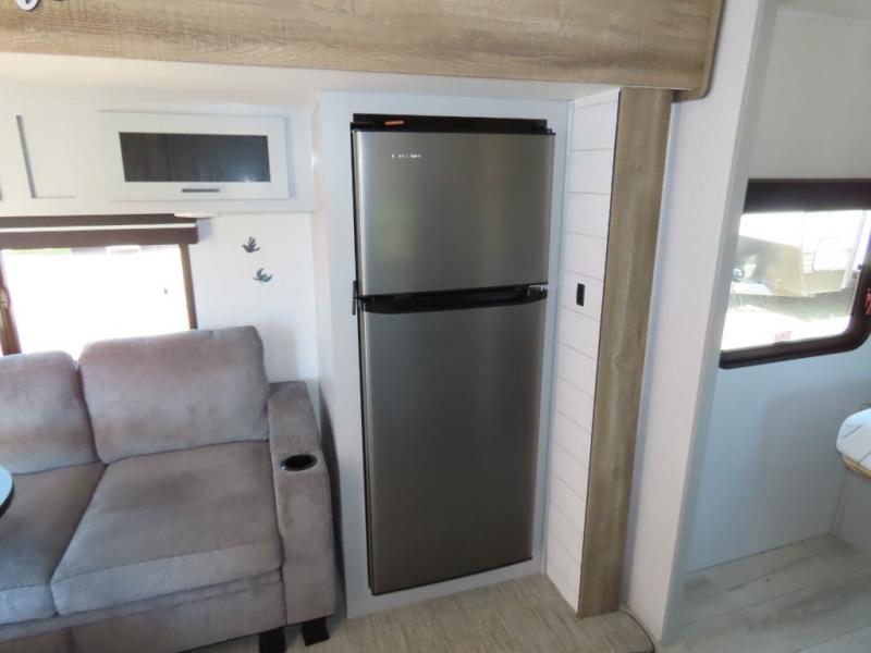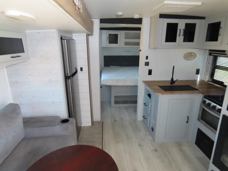 Check out this travel trailer with a full rear bath for added privacy and a front private bedroom that will feel just like home. You can prepare eggs and bacon on the three burner range, or use the microwave oven if you're on the go. This model includes a sofa with a table to dine at each day, or you can enjoy your meal under the 16' power awning with LED lights.