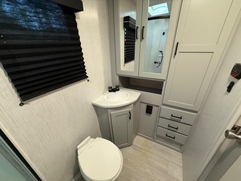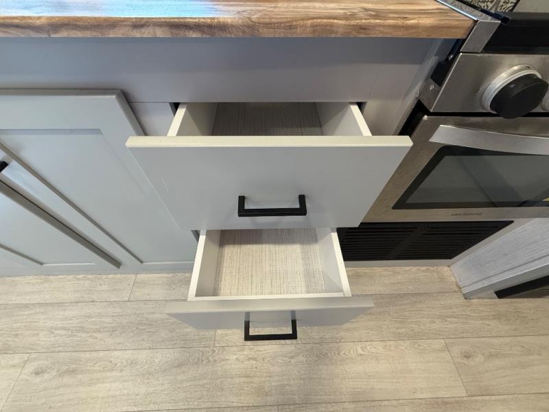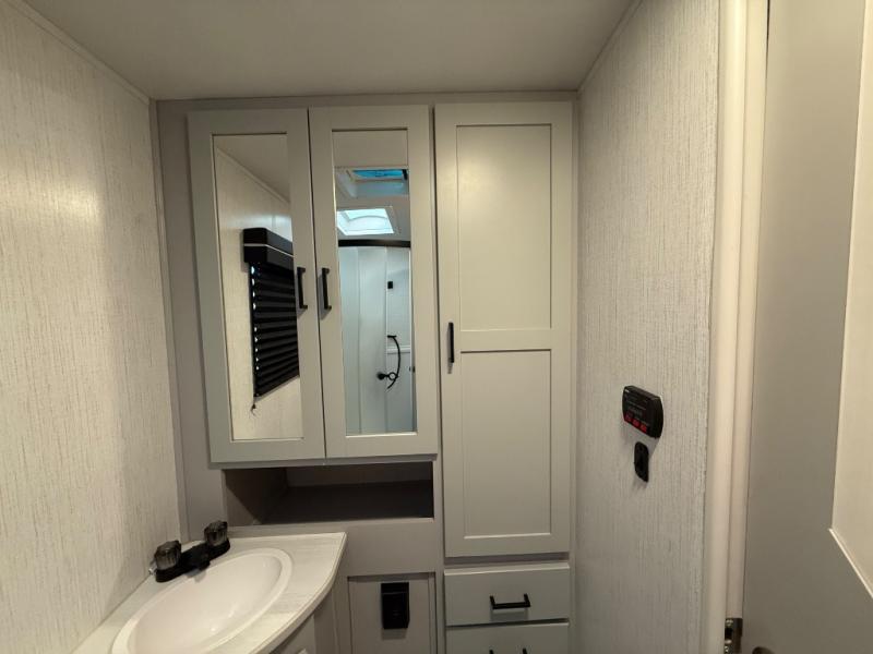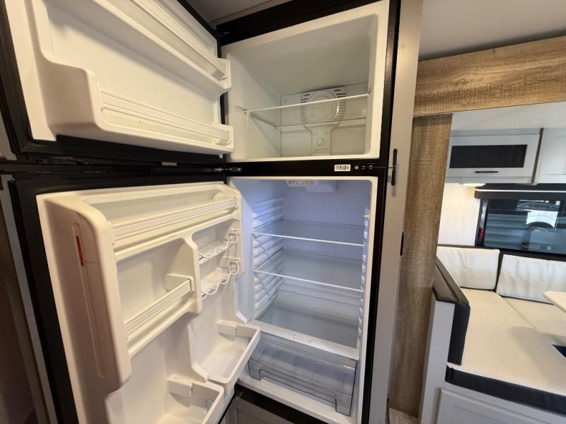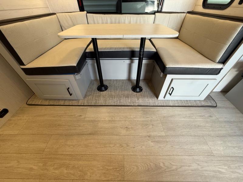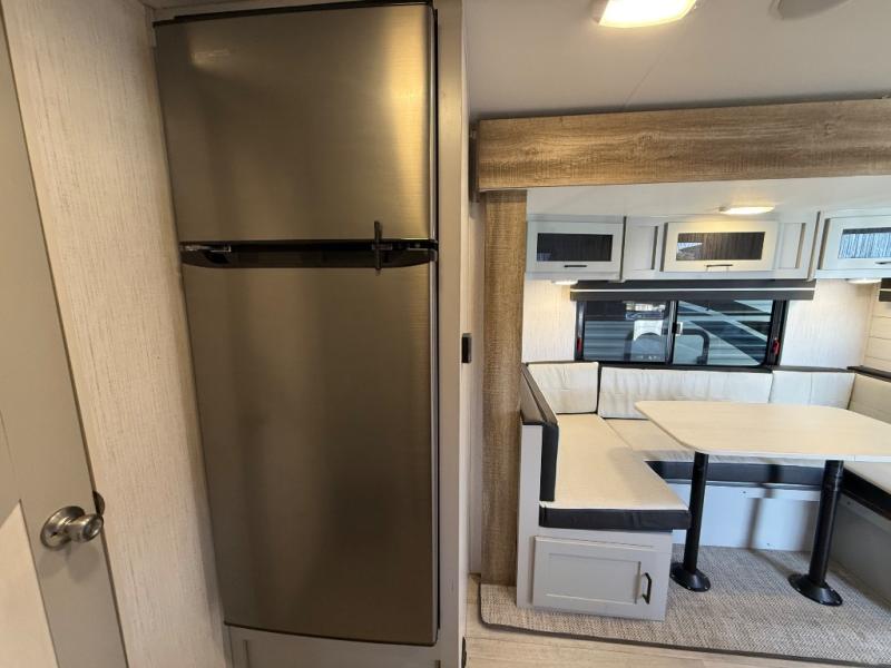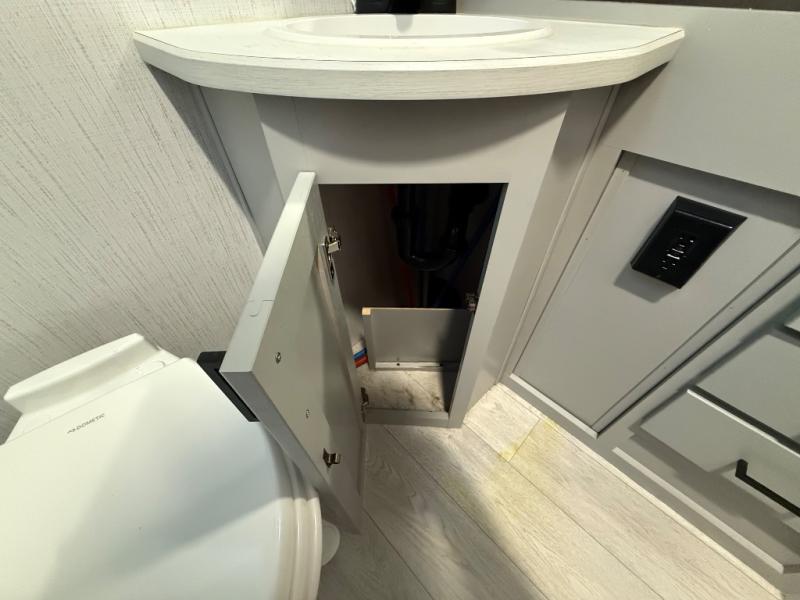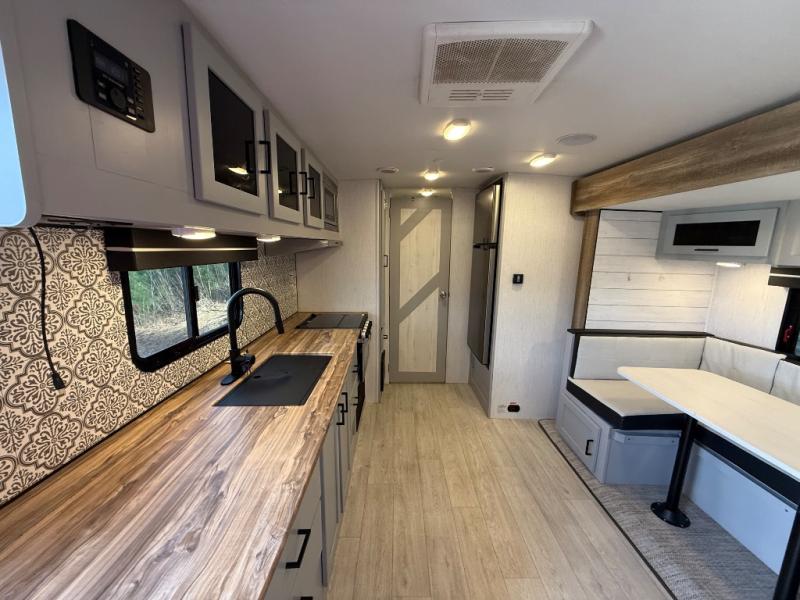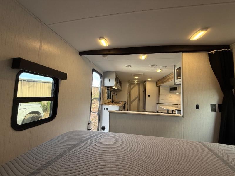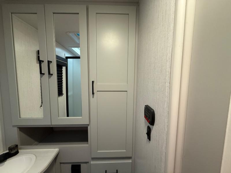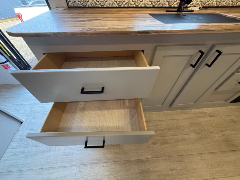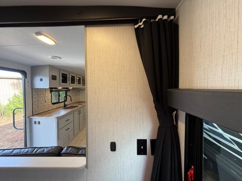 This travel trailer is both spacious and comfortable for all your camping needs. The U-shaped dinette within the slide out will be perfect to dine around each day, plus there is a sofa here as well to relax with a good book. The full rear bath has a convenient pantry to store clean towels and toiletries, and there is also a kitchen pantry for snacks. You will enjoy your own bedroom up front with a Comfort Select gel-infused king bed and a privacy curtain. It will be a snap to prepare breakfast each morning on the three burner range, and the milk can go back in the 8 cu. ft. refrigerator!
