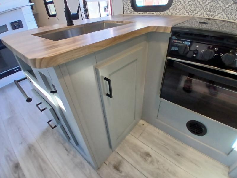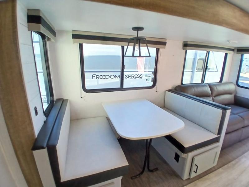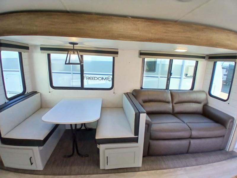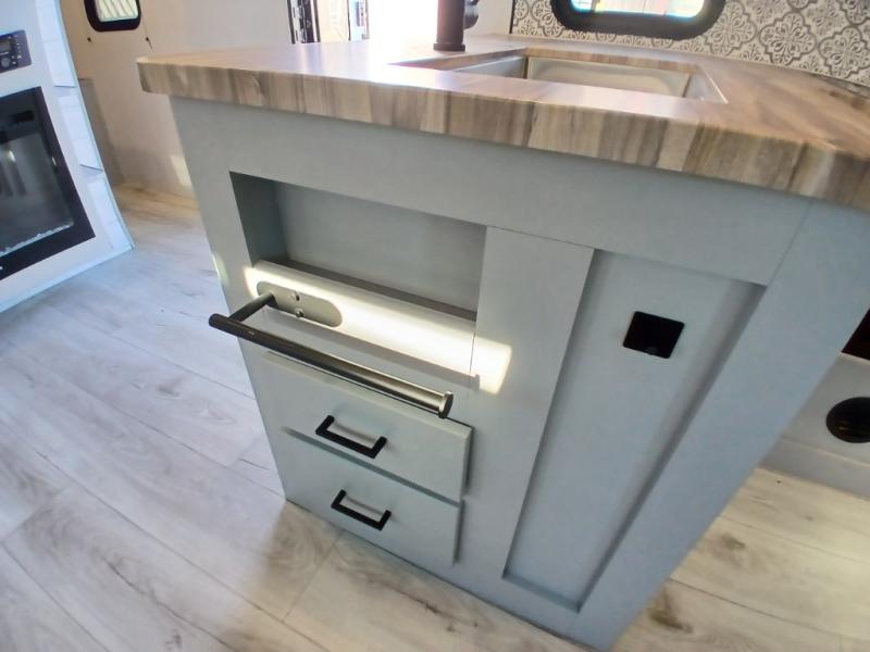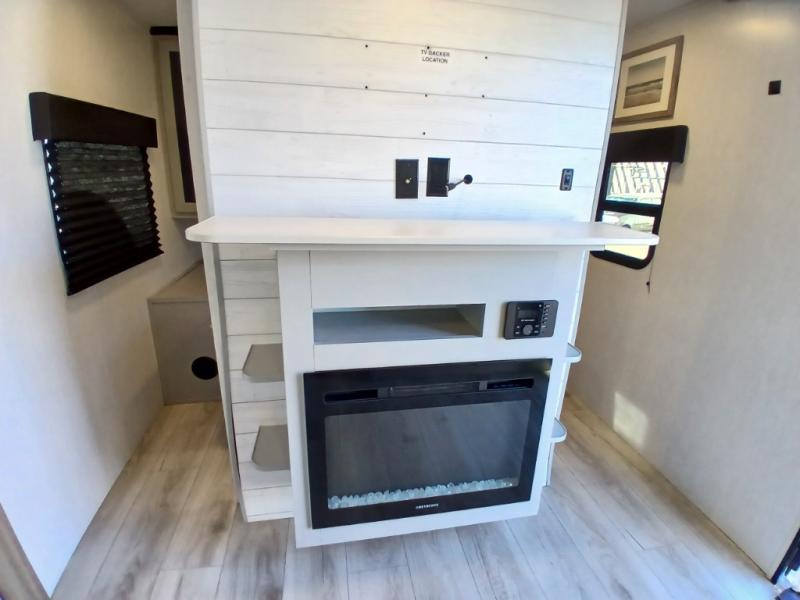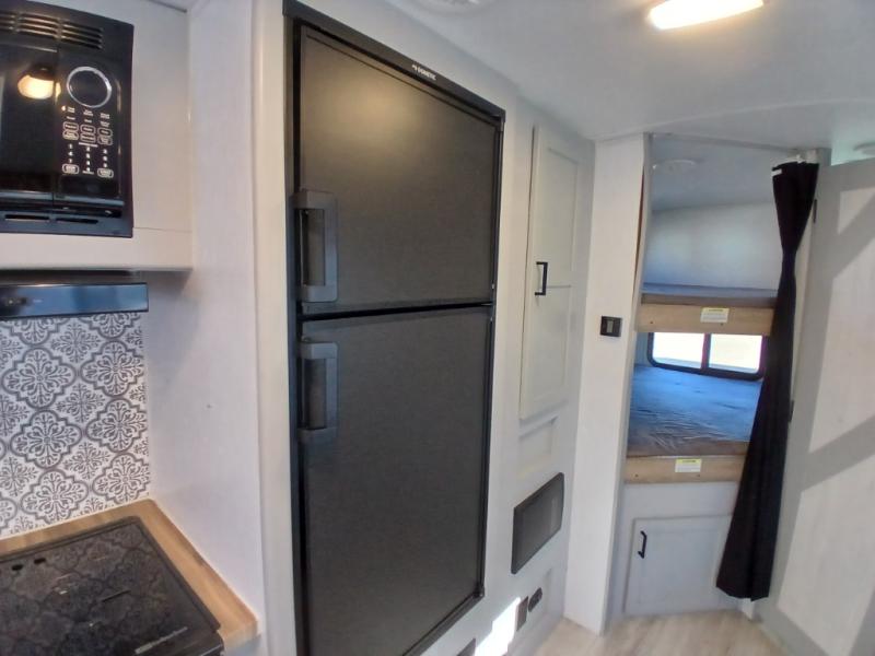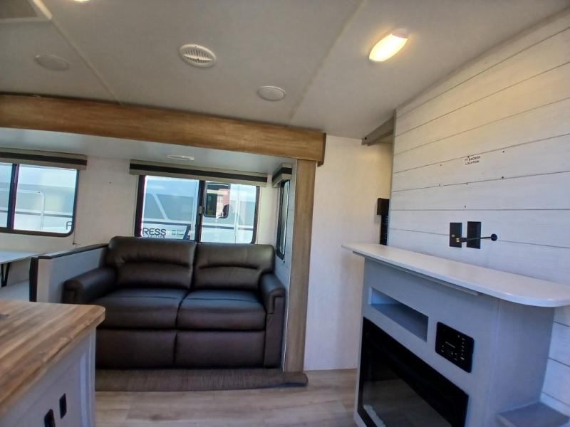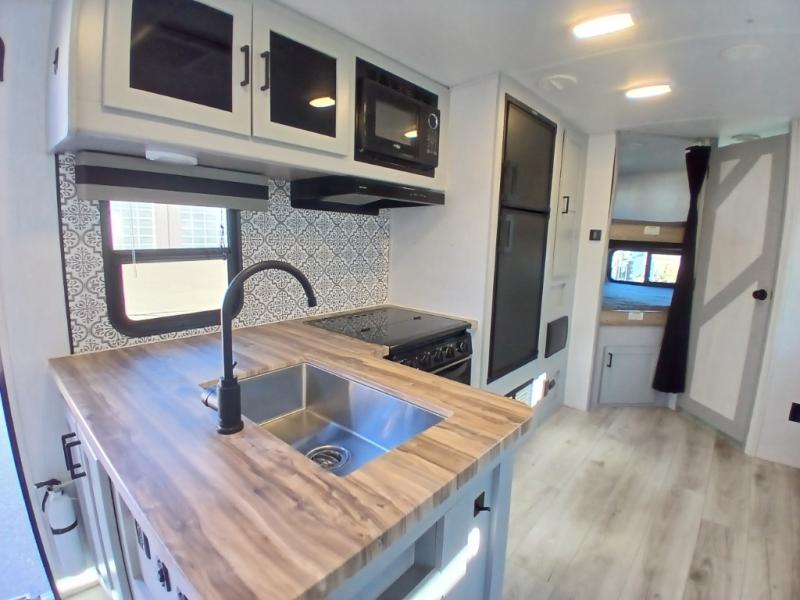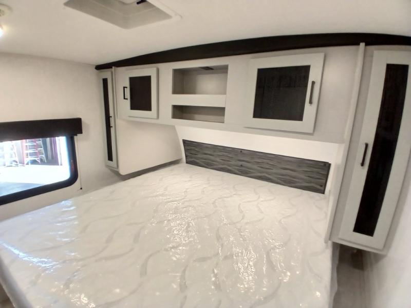 This is the perfect travel trailer for camping adventures with a group since it can sleep eight people each night. The kids or your guests will love the double-size bunks to sleep on, and you will enjoy the bed in the front private bedroom. There is additional sleeping space on the sofa and booth dinette within the slide out. Prepare all your meals on the three burner cooktop indoors, or head outside to cook on the exterior slide cooktop. You will appreciate the power awning with LED lights for some much wanted shade during the day, and an inviting space at night.