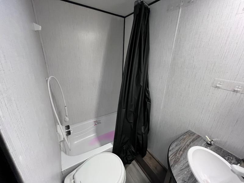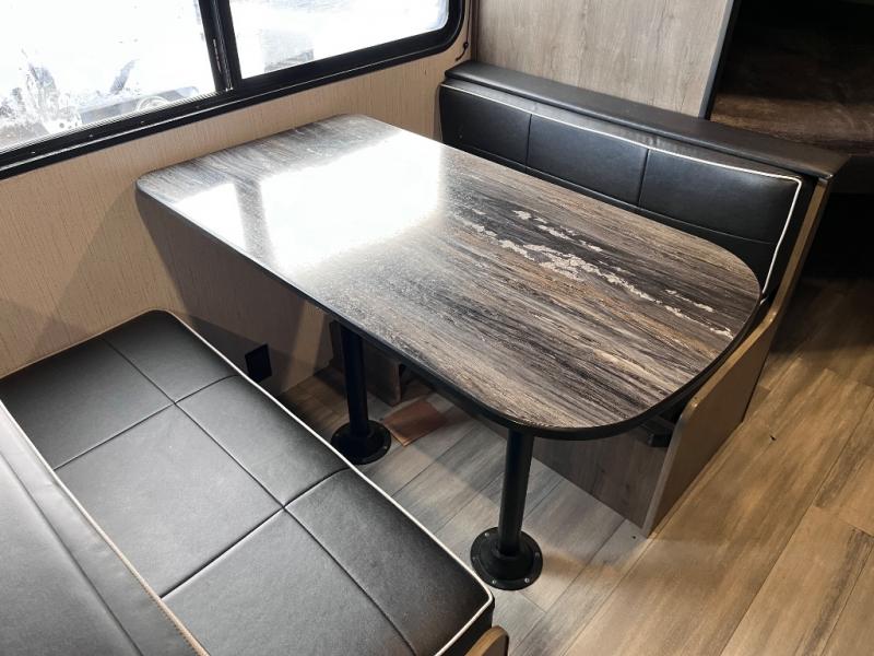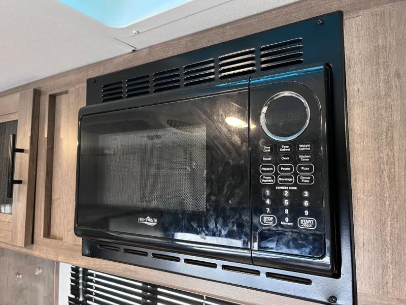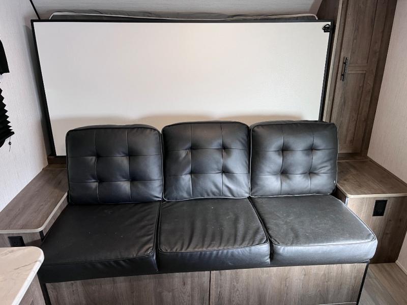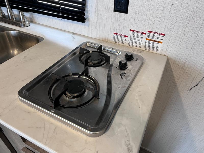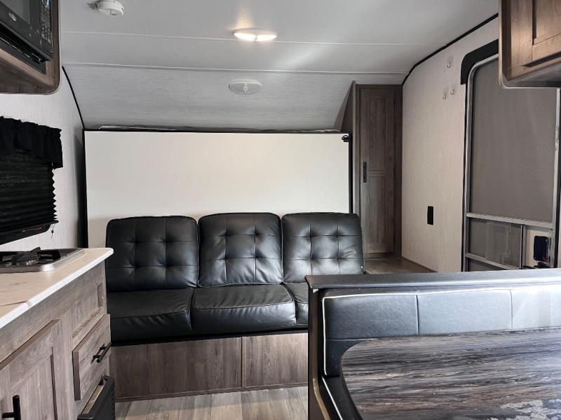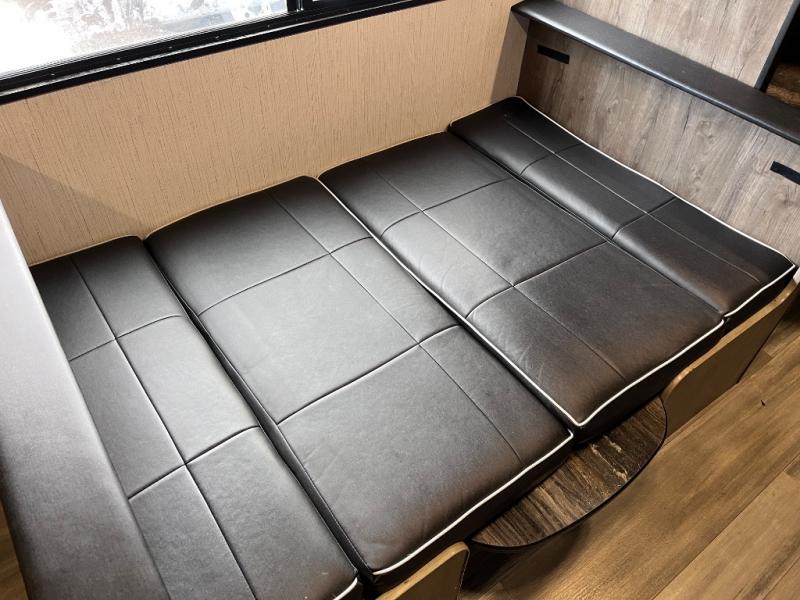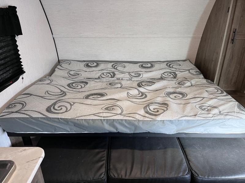 Easy to store and easy to tow, this Pioneer will allow you and your group enough sleeping space for seven with the front Murphy queen bed, the double-size bunks in the rear next to the full bathroom, and the booth dinette once setup for nighttime. You will find storage in the front shirt closet, under the bunks, and in overhead cabinets. There is a two-burner cooktop, a microwave and a 6 cu. ft. refrigerator to make meals, plus you can use the outside camp kitchen. And don't forget about the 14' power awning that creates an outdoor living area protected from the elements.