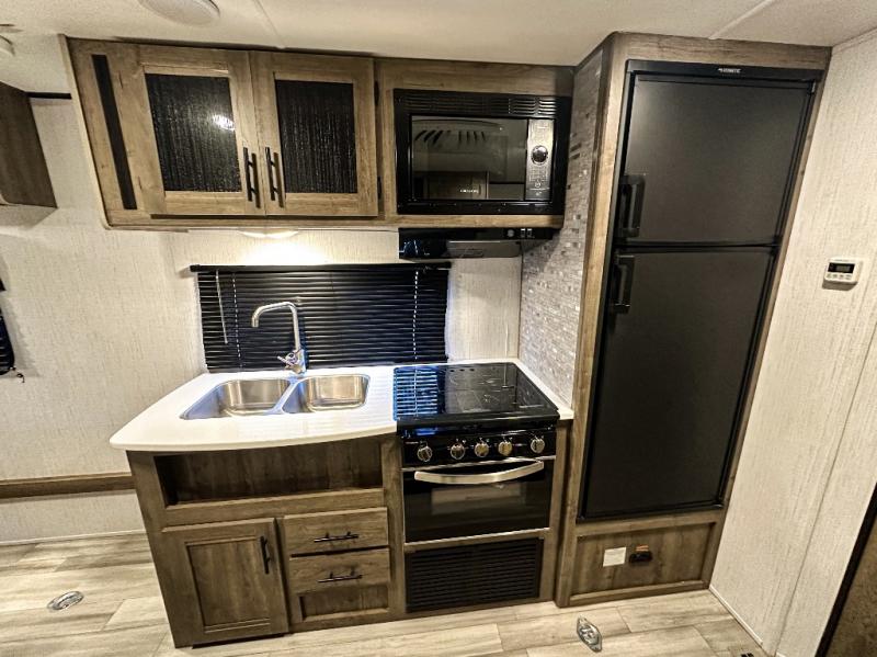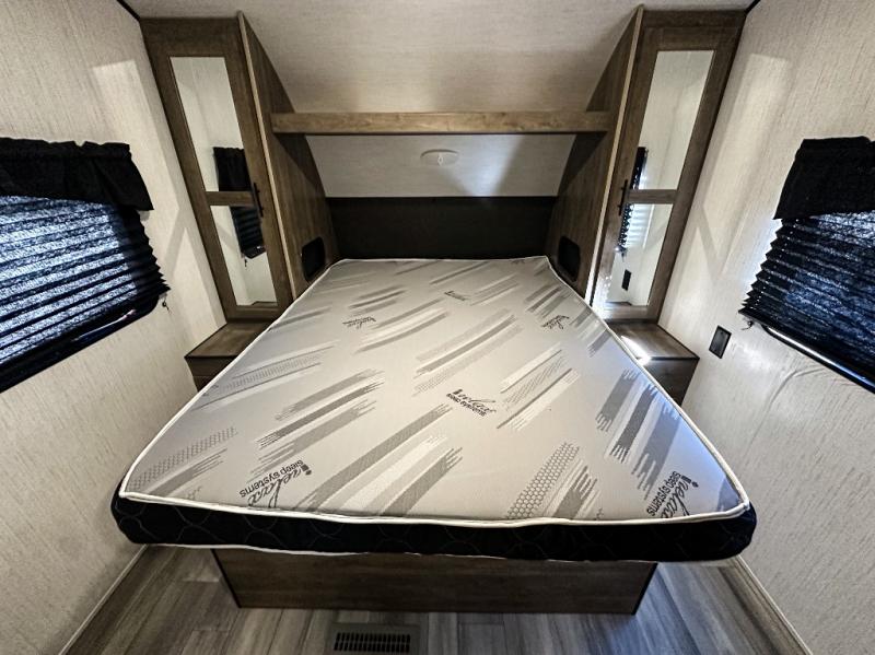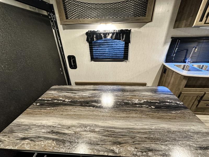 It's time to load up your toys into 16' of cargo space to head to your favorite trails and campgrounds! Don't forget your clothing, gear and food to allow you to stay awhile. Once at the trails, easily unload your toys and setup the trailer including the dual opposing fold up sofas and plan your ride. The cook will have full amenities to fuel everyone including a three burner cooktop and microwave oven, plus a double door refrigerator to store your beverages and cold items. There are lots of overhead cabinets for other items. The walk-through bathroom is convenient with access from the front bedroom which offers clothing storage, windows for views and fresh air, and a queen bed. You might even like to add a few options such as an electric awning with LED lights, a spare tire and carrier, and/or nightshades in the living area and bedroom.