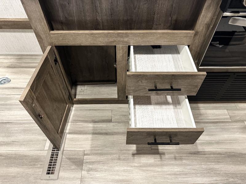 With any Pioneer dual axle travel trailer or toy hauler by Heartland, there is a hybrid aluminum front profile with aerodynamic radius front cage structure for better wind and water deflection, adding strength and reducing tongue weight. The Pioneer Power Pack provides power stabilizer jacks, a power tongue jack and a power awning, plus the EZ Camp package gives you a black tank flush, an outside shower with hot and cold water, LP quick connect, an outside TV hookup and a flip-down secure step with an XL handle. The interior offers solid surface countertops and a large stainless steel sink with high rise faucet in the kitchen, full linoleum on the main floor and no carpet in slide outs, cable TV hookup with RG6 coax cabling, and crossflow windows allowing the fresh air to circulate through the extra large windows. Make your selection today!