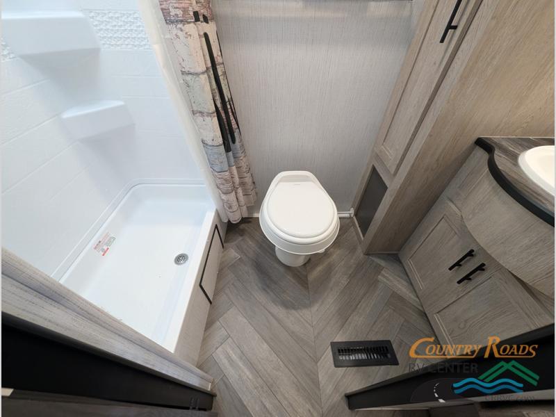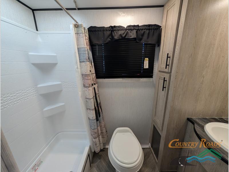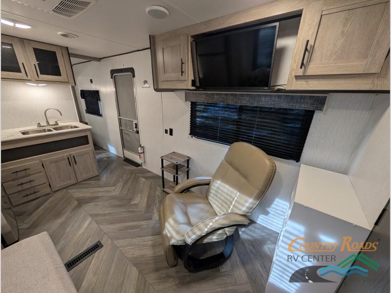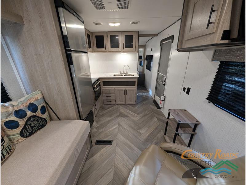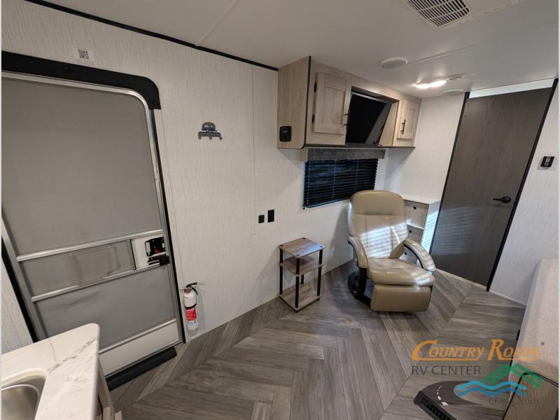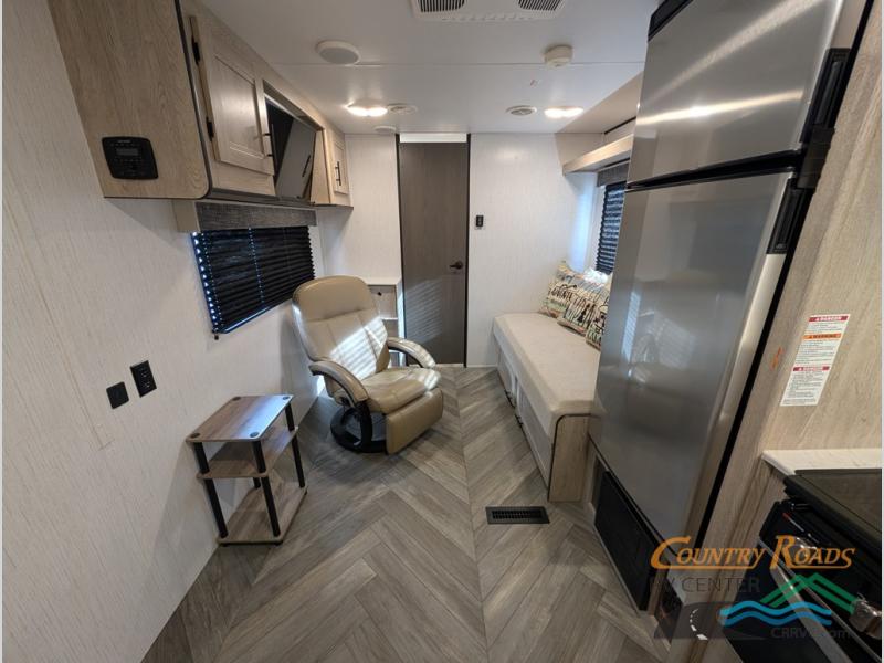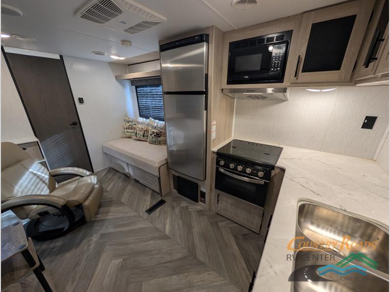 Head to the lake in this cozy travel trailer for four! The full rear bath will provide privacy everyone will appreciate, and the front private bedroom will feel just like home. This Prowler kitchen includes everything you need to prepare meals each day, including a three burner cooktop, a microwave oven, and a 10 cu. ft. 12V stainless steel refrigerator for leftovers. This model also includes a 14' power awning with LED lights for outdoor fun and relaxation!
